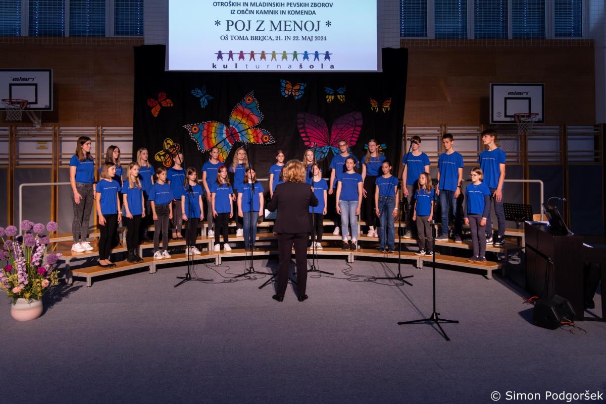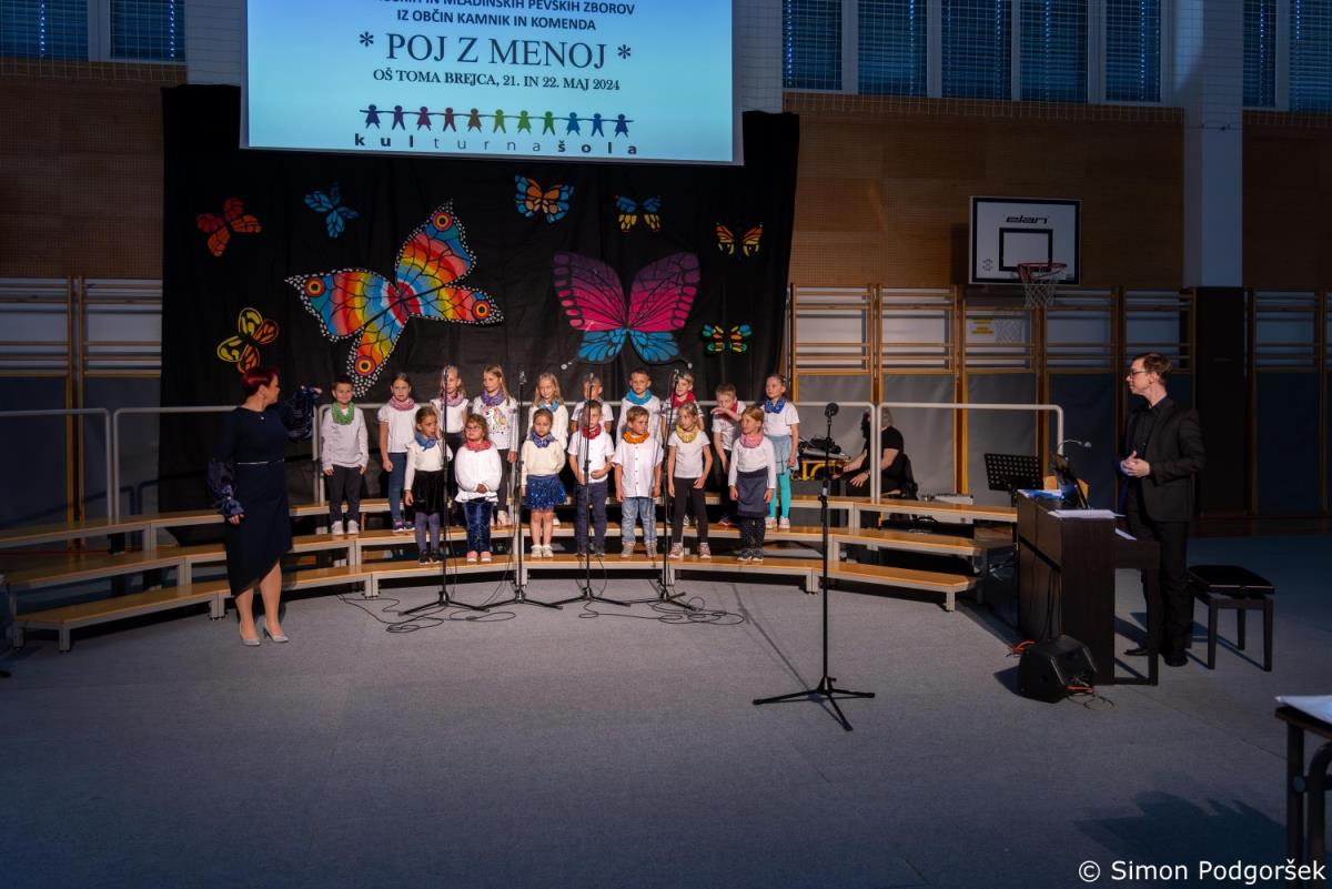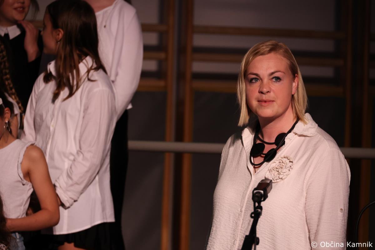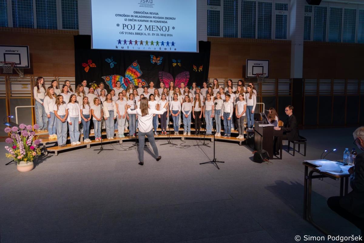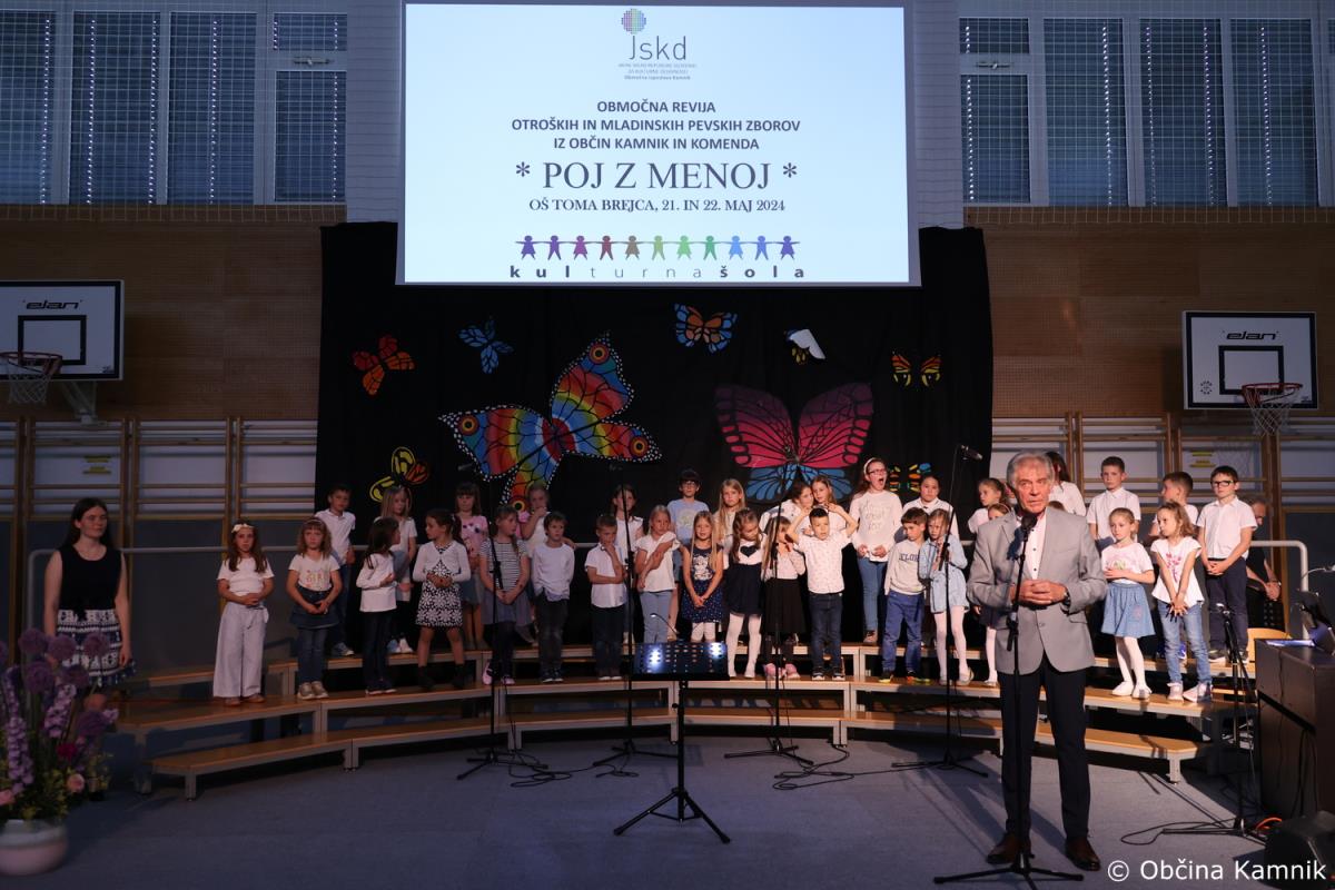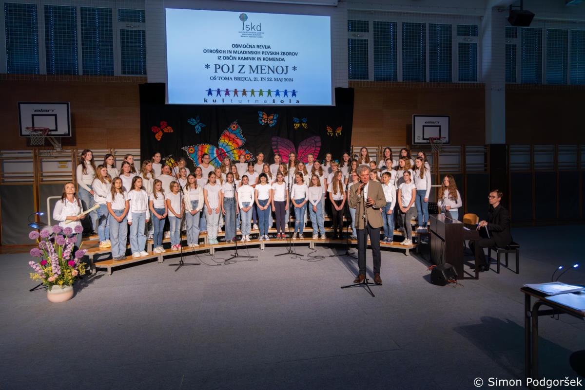 V torek, 21. maja, in v sredo, 22. maja 2024, se je v večnamenski dvorani Osnovne šole Toma Brejca odvijala Območna revija otroških in mladinskih pevskih zborov občin Kamnik in Komenda z naslovom Poj z menoj! Zbranim se je na drugem pevskem večeru v imenu Občine Kamnik pridružila podžupanja Romana Učakar skupaj z vodjem kamniške izpostave Javnega sklada Republike Slovenije za kulturne dejavnosti Tonetom Ftičarjem.