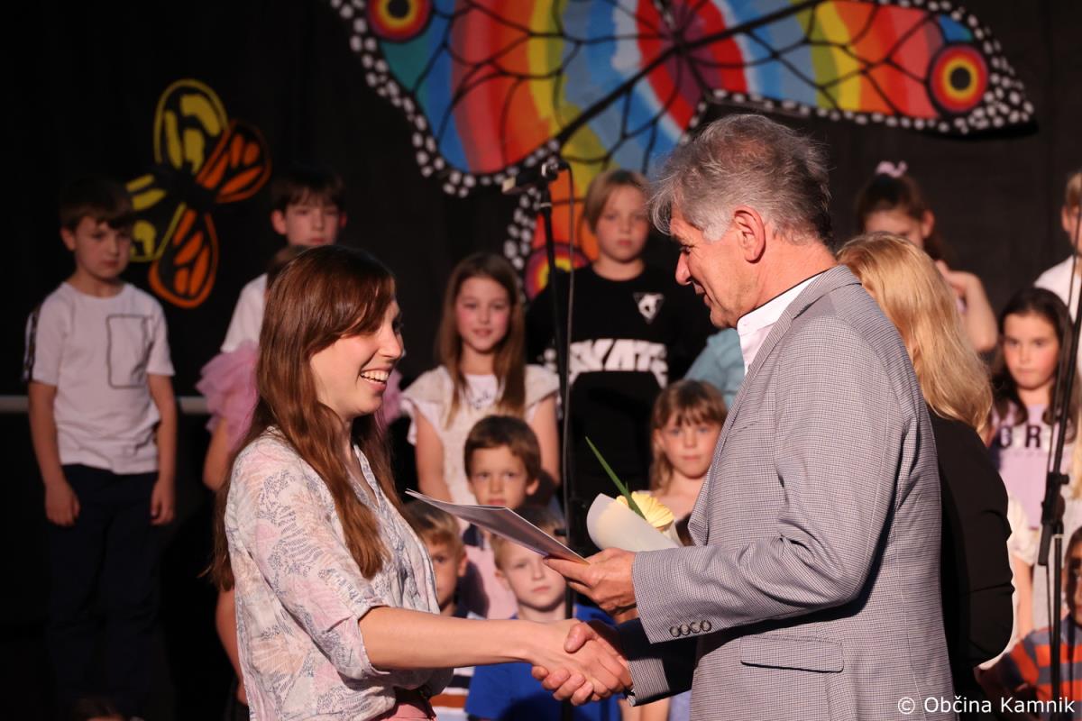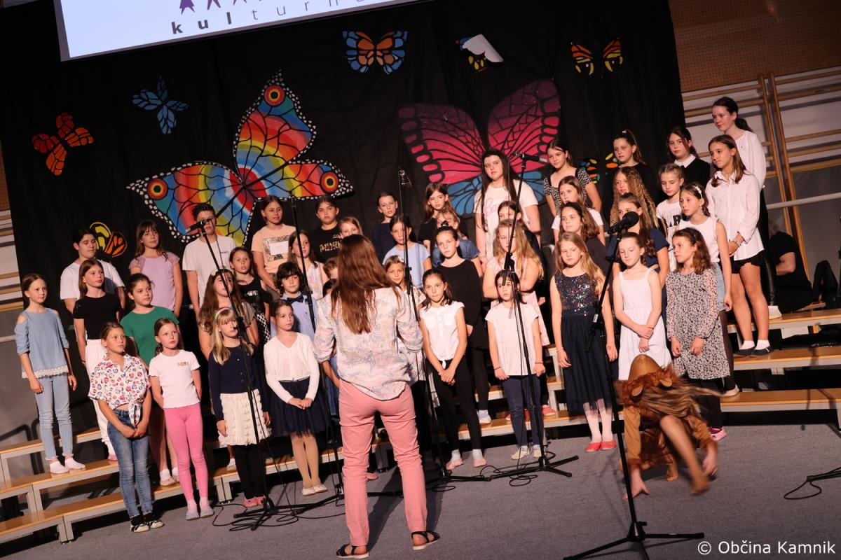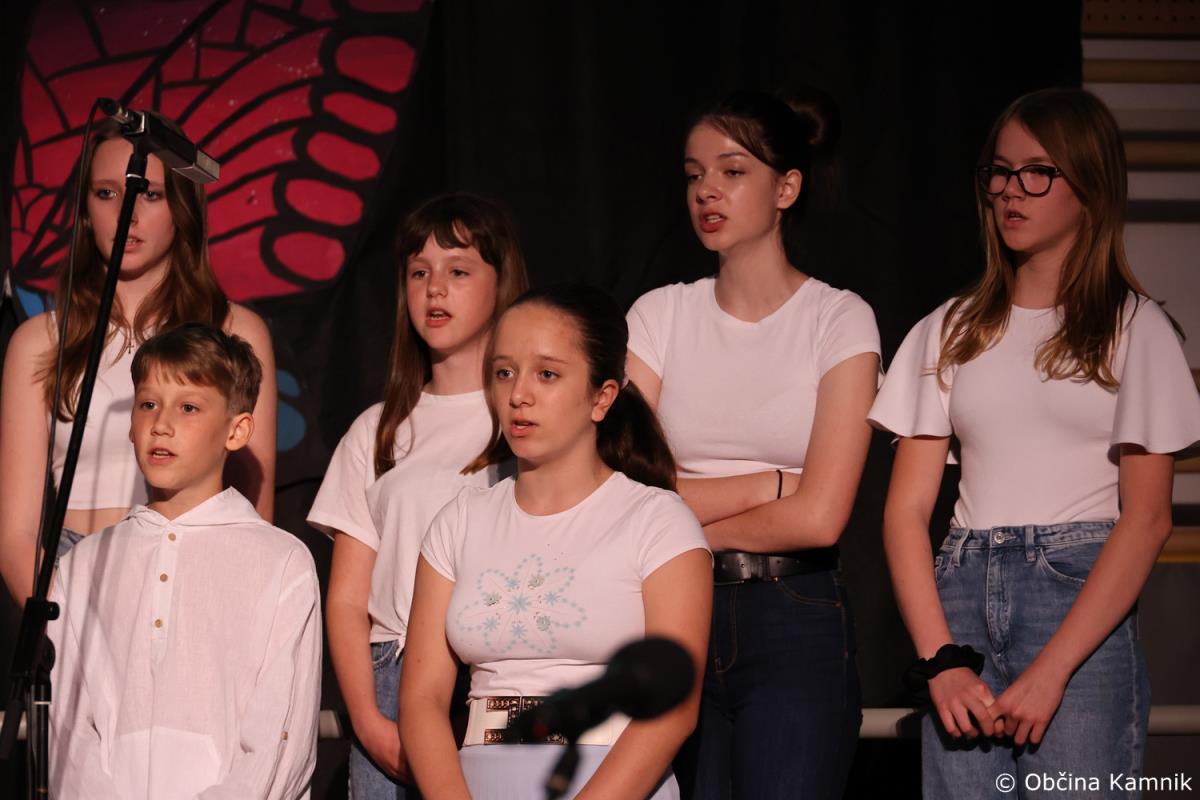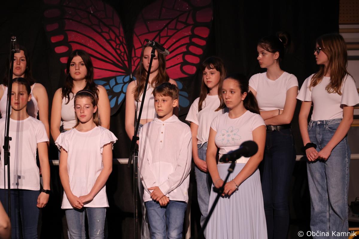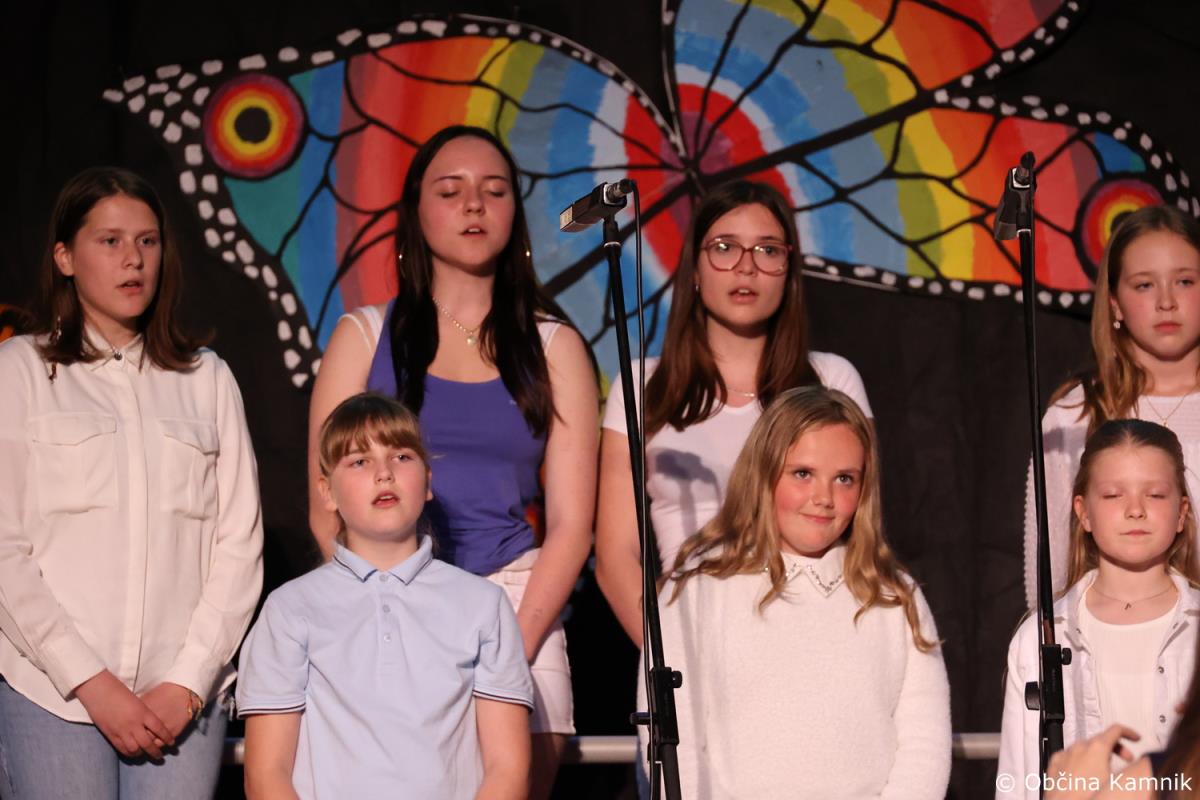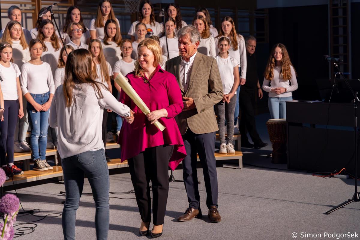 V torek, 21. maja, in v sredo, 22. maja 2024, se je v večnamenski dvorani Osnovne šole Toma Brejca odvijala Območna revija otroških in mladinskih pevskih zborov občin Kamnik in Komenda z naslovom Poj z menoj! Zbranim se je na drugem pevskem večeru v imenu Občine Kamnik pridružila podžupanja Romana Učakar skupaj z vodjem kamniške izpostave Javnega sklada Republike Slovenije za kulturne dejavnosti Tonetom Ftičarjem.