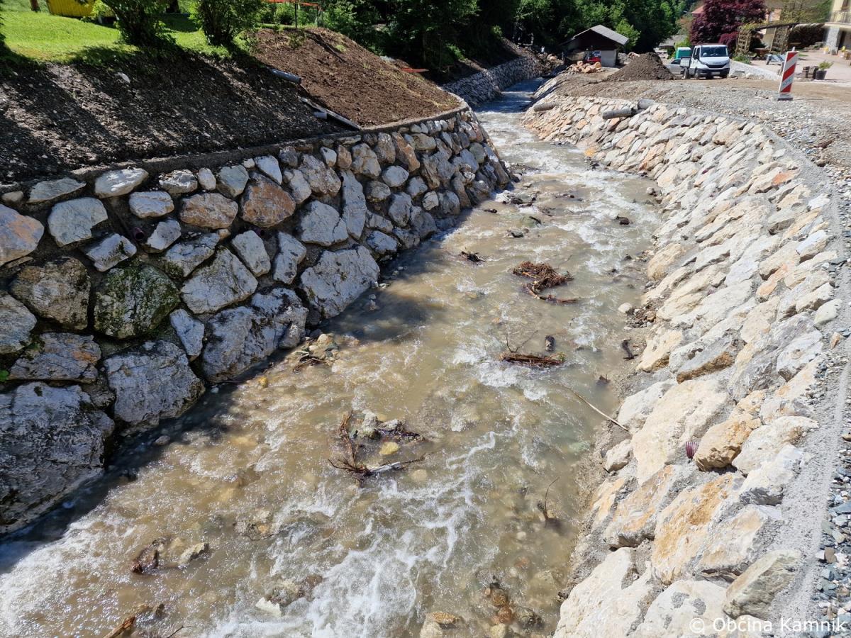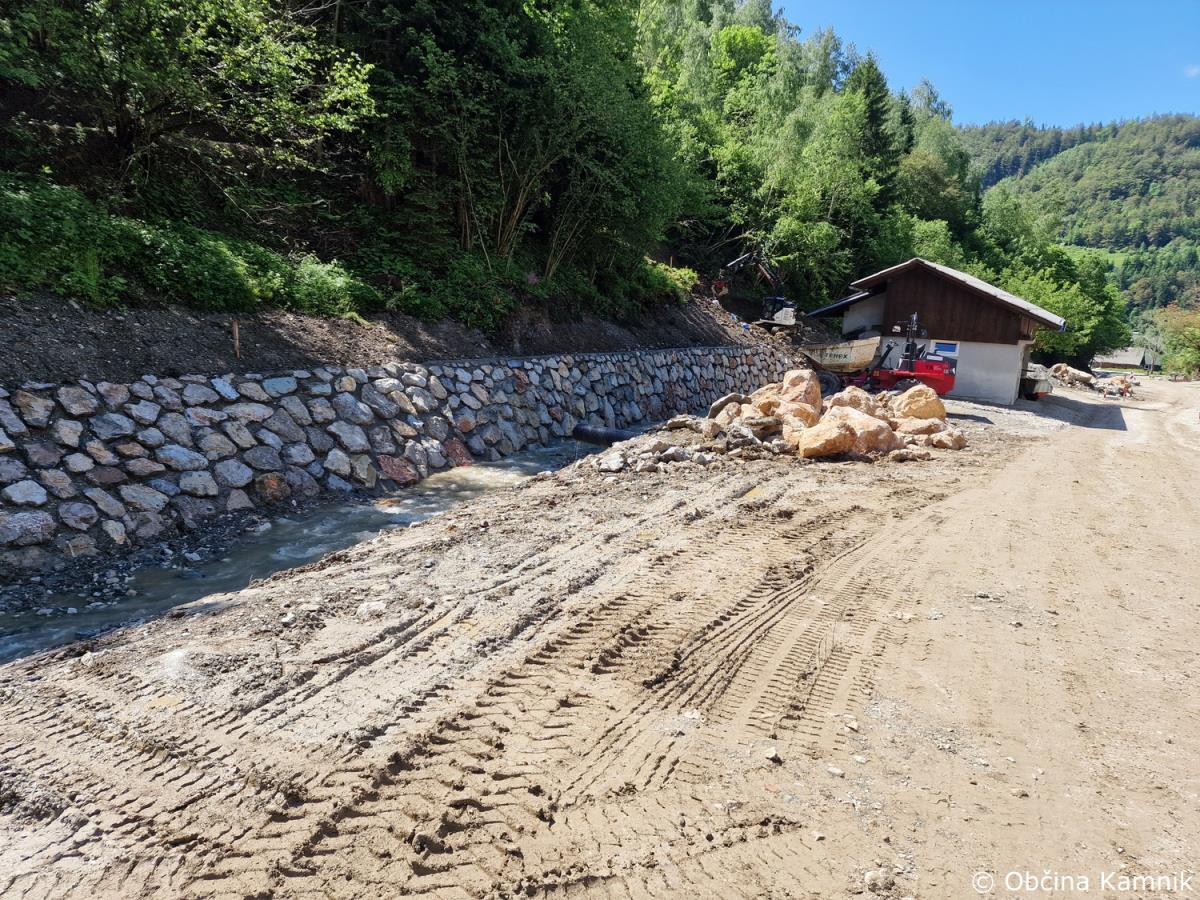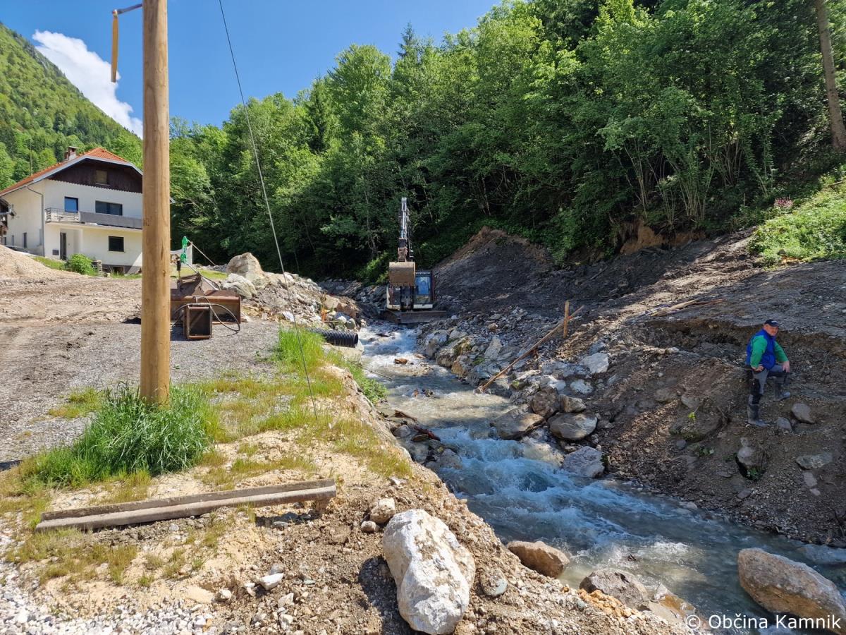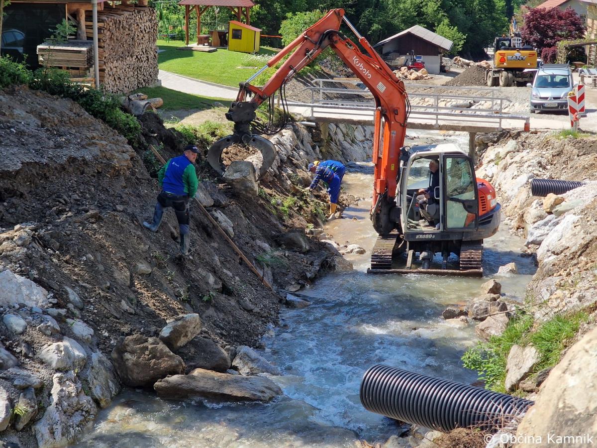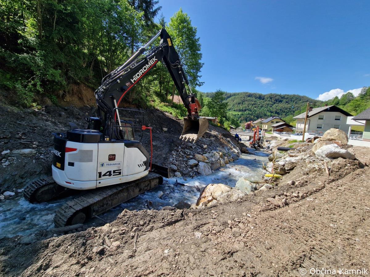 Na območju Občine Kamnik poteka več delovišč sanacijskih obnov vodotokov in hudournikov. Direkcija Republike Slovenije za vode na podlagi izdelanega plana sanacije za izvedbo ureditev vodotokov po poplavah, skupaj s podjetje Hidrotehnik d. o. o. ter podizvajalci, izvaja sanacijo po poplavah.
