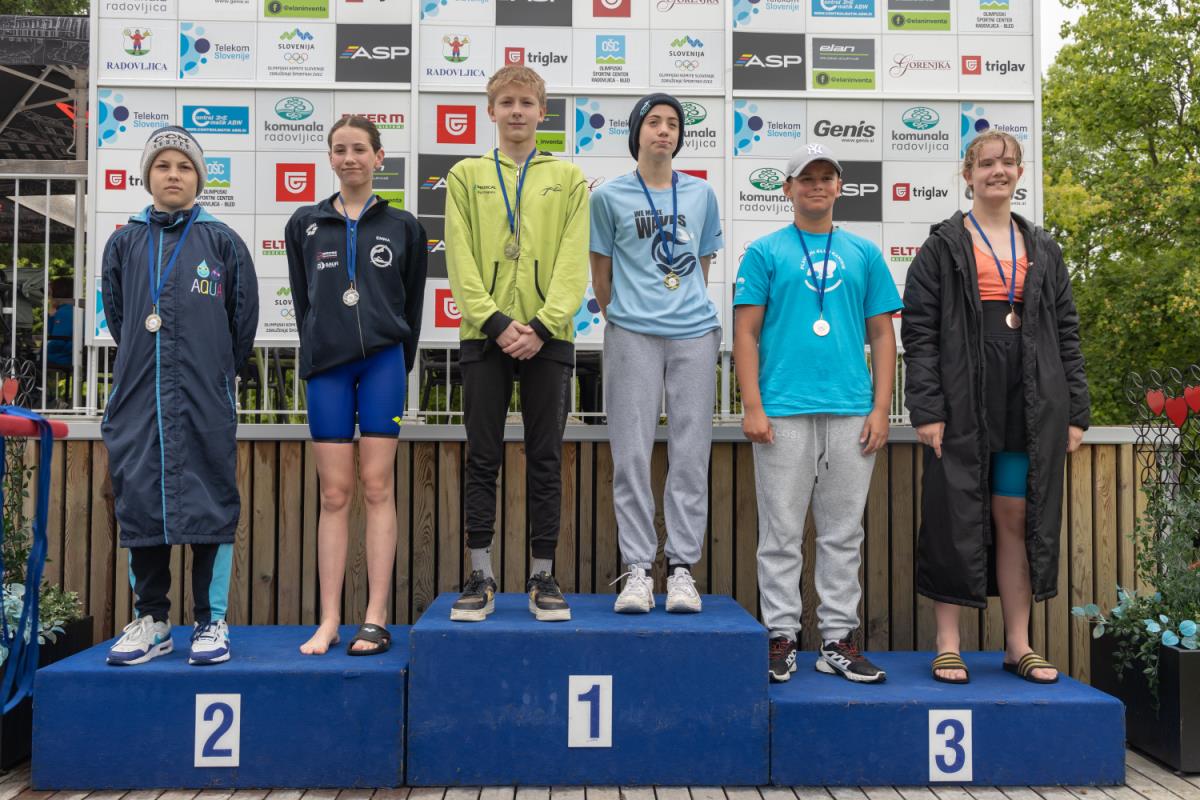 Prav vsi so odplavali svoje nove osebne rekorde, tudi uvrstitev do desetega mesta bilo ogromno, zato poglejmo zgolj kdo so stopili na stopničke za zmagovalce. V svojih kategorijah so medalje osvojili: