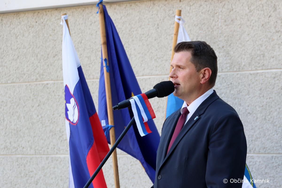 Dr. Bojan Balkovec je nadaljeval: »Nemci so po usmrtitvah natisnili dvojezične letake v nemščini in slovenščini, kjer so bili našteti usmrčeni in naveden vzrok za usmrtitev. Plakat z imeni tukajšnjih usmrčenih govori o komunistični tolpi, ki je izvajala roparske napade v Kamniku in okolici, pri čemer so nemške policijske sile uspele ubiti 18 banditov in jih več ujeti. Letak še navaja, da so za sodelovanje z uporniki in oviranje nemške policije, prejeli zasluženo kazen. Na dnu plakatov je običajno sledilo opozorilo prebivalstvu in poziv odpornikom, naj se prijavijo oblastem. Talci so bili lahko posamezniki, ki so jih okupatorji že zaprli v zapor. Tam so bili mučeni in nazadnje usmrčeni. Nekateri med njimi so imeli možnost svojim dragim poslati pismo, se od njih posloviti. Ohranjena so mnoga pretresljiva poslovilna pisma. Nekateri zaporniki niso smeli pisati in so se poslovili z napisi na stenah celic v zaporih. Mnogokrat pa je okupator talce usmrtil med svojimi akcijami na terenu, mnoge tudi na dvorišču lastnega doma. Nasilje okupatorja pa ni zatrlo upora in maja 1945 je prišla zmaga nad zlom, ki je mnoge narode v Evropi in drugod po svetu želelo uničiti. Vojna se je končala, prišel je mir, kljub obljubam, da vojne ne bo nikoli več, pa ni dolgo trajal. Pravijo, da je zgodovina učiteljica življenja. Žal tega ne moremo trditi, ko razmišljamo o vojnah. Iz zgodovine se nismo naučili ničesar. Od najstarejših obdobjih človeške civilizacije do danes je bilo po različnih merilih med 1500 in 10000 vojn in spopadov. Ne glede na to, katero od številk upoštevamo, smo imeli dovolj možnosti, da bi se naučili živeti v miru. Vsaka vojna je prinesla ropanja, uničevanje vsega, kar je družba tedaj imela, predvsem pa veliko nepotrebnih žrtev. Za vsakim umrlim so ostali žalujoči, za tukajšnjimi žrtvami so ostale žalujoče matere, očetje, bratje, sestre, žene, otroci... Danes je človek največja grožnja obstoju civilizacije. Človek je v preteklosti raziskal vse kotičke tega sveta in nazadnje odšel še v vesolje - tako daleč, da si te razdalje težko predstavljamo. Z znanjem smo odpravili mnoge nalezljive bolezni in izkoreninili smo tudi tiste, ki so lahko še pred dvestopetdesetimi leti pomenile neizogibno smrt in so danes samo še opis, ki si ga preberemo v knjigi. Albertu Einsteinu pripisujejo misel »Dve stvari sta brezmejni: vesolje in človeška neumnost, a za vesolje nisem prepričan.« Vojne so eden od odrazov človeške neumnosti. Neumne poteze, ki pripeljejo do vojne, so bile in so sprožene zaradi grabežljivosti, nevoščljivosti, oholosti, neracionalnega strahu. Umrlih, ranjenih in poškodovanih je vsak dan več. Vojna pomeni uničenje vsega. V vojnah, ki jih gledamo na televiziji, na posnetkih iz Gaze, Ukrajine, Sudana, Haitija in drugod vidimo velikansko trpljenje in uničenje. Današnje vojne so totalne in potekajo povsod in uničujejo vse. Vsak od nas ima le eno življenje in eno smrt, je zapisal Oton Župančič, zato si moramo toliko bolj prizadevati za mir. A če je človeštvo zmoglo s svojim umom doseči neverjetne stvari, ali je sposobno doseči tudi konec vojn, ki še potekajo in jih preprečiti v bodoče? Žal je za mir potreben napor, ki ga premnogi predstavniki, ki jih izvolimo za upravljanje družbe, torej politiki, niso sposobni. Še težje kot pogovarjati se o miru, ko vojna že traja, je reševanje sporov, da do spopada sploh ne pride. Za to sta potrebna potrpljenje, modrost, vizija, strpnost in želja po skupnem dobrem. Vsega tega pa danes v politiki manjka. Iščejo se rešitve, ki so všečne in se do njih hitro pride. Pri reševanju sporov in ohranjanju miru, so hitre rešitve najslabše – velikokrat vodijo le v odlaganje težav in nadaljevanje krize. Naša himna poje o miru med narodi, svetu brez prepirov, o svobodi in miru med sosedi. Za mir se moramo zavzemati vsi in ves čas, naša dolžnost je, da politike na to opominjamo in od njih zahtevamo, da si prizadevajo za mirne rešitve sporov. Tukajšnji spomenik, vodnjak, je posvečen osmim junakom, talcem, ki so umrli, ker okupator ni želel enakosti, svobode in bratstva med vsemi narodi. Posvetilo miru je tudi današnja proslava, na kateri se spominjamo tistih, ki so umrli zato, ker okupator ni želel miru in svobode, ampak nadvlado, zatiranje in uničenje drugega naroda.«