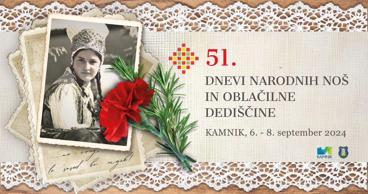 Kamnik bo letošnje leto v drugem septembrskem vikendu za 51. Dneve narodnih noš in oblačilne dediščine ponovno odel živopisne barve rut in oblačil narodnih noš. Pred vami je težko pričakovani program 51. Dnevov narodnih noš in oblačilne dedščine, ki zajema dogodke od petka, 6. septembra, do nedelje, 8. septembra 2024, ko bo naše srednjeveško mesto v naročju Kamniško-Savinjskih Alp obarvano s predstavitvijo bogate oblačilne dediščine. Zaznamovano bo z vrsto dogodkov, katerih rdečo nit predstavlja želja po tem boljši predstavitvi pestre etnološke dediščine, povezane z oblačili, pesmijo, plesom in glasbo. Organizatorji se trudimo, da bi s prireditvijo poudarili pomen tako imenovane narodne noše, njeno vlogo pri razvoju narodne identitete ter razvoju kulture in nacionalne zavesti na naših tleh.