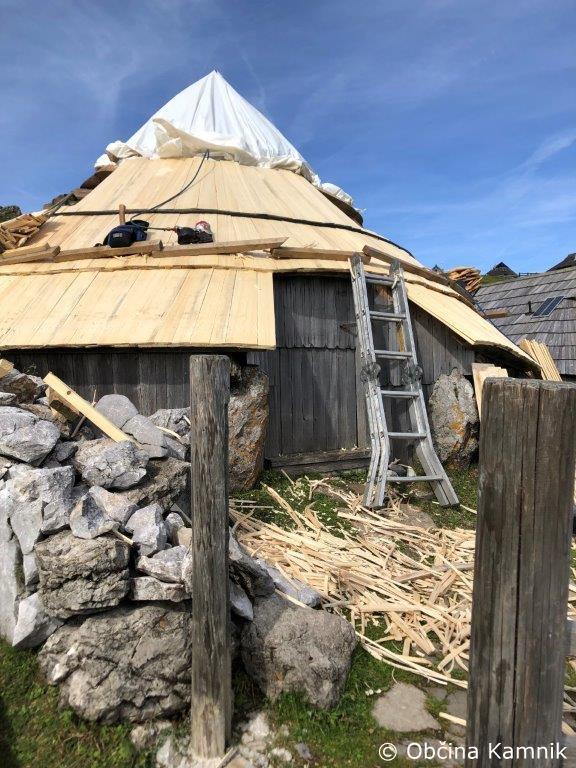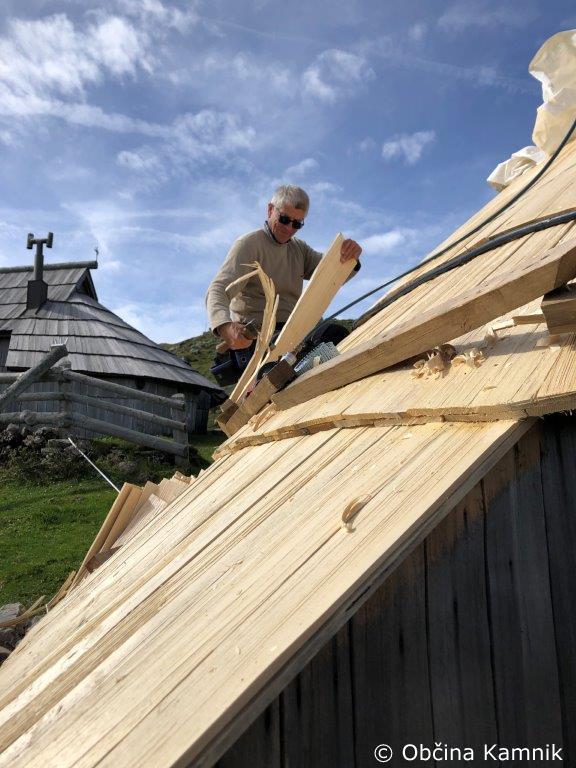 Na Preskarjevi bajti na Veliki planini je bil v lanskem letu saniran zid okrog objekta (suhozid), izvedla so se manjša popravila (zamenjava vhodnih vrat in nekaterih dotrajanih lesenih delov, nove klopi zunaj…), v tem letu pa se je izvedla večja investicija, in sicer zamenjava dotrajanih skodel na celotni strehi ter popravilo najbolj dotrajanih lesenih elementov na obodu koče.
