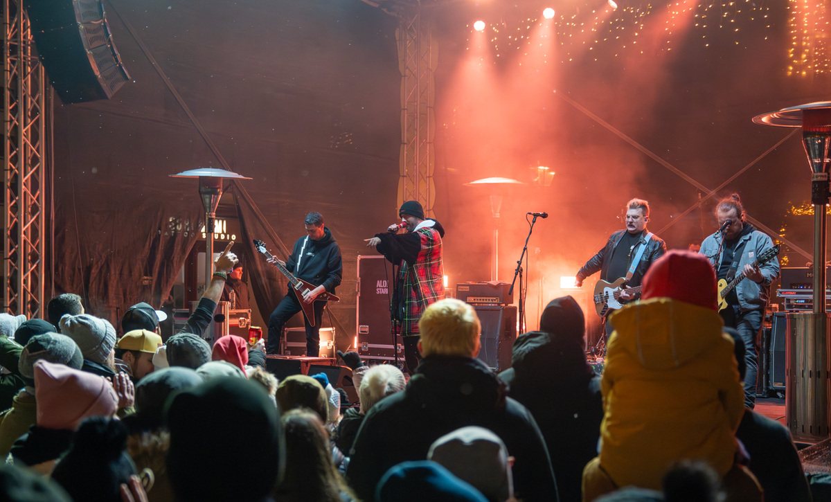 V torek, 31. decembra, je Glavni trg preplavila urbana energija, ko je kot predskupina nastopila mlada punk-rock zasedba Alo!Stari, ki je občinstvo navdušila z neukrotljivo dinamiko in sproščenim mladostnim nabojem. Vrhunec večera je sledil z nastopom Emkeja, ene najpomembnejših figur slovenskega rapa. S svojimi iskrenimi, prizemljenimi in duhovitimi besedili je ponovno dokazal, zakaj ostaja glas generacije, ki se dotika tako mladih kot odraslih.