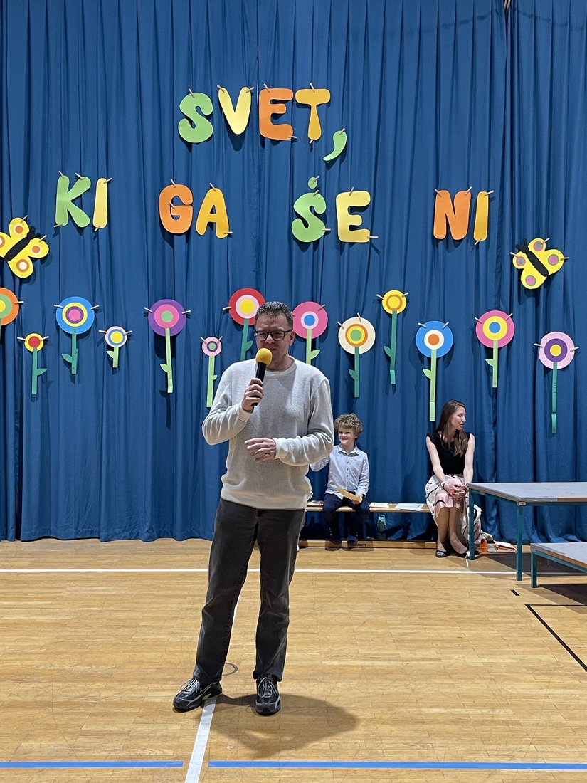 V svojem nagovoru je župan Matej Slapar poudaril plemenito poslanstvo učiteljev ter izrazil hvaležnost celotnemu kolektivu šole za organizacijo sproščene in nepozabne prireditve. Posebej je izpostavil pomen vključevanja takšnih dogodkov v program občinskega praznika ter vsem zbranim iskreno čestital ob prazniku.