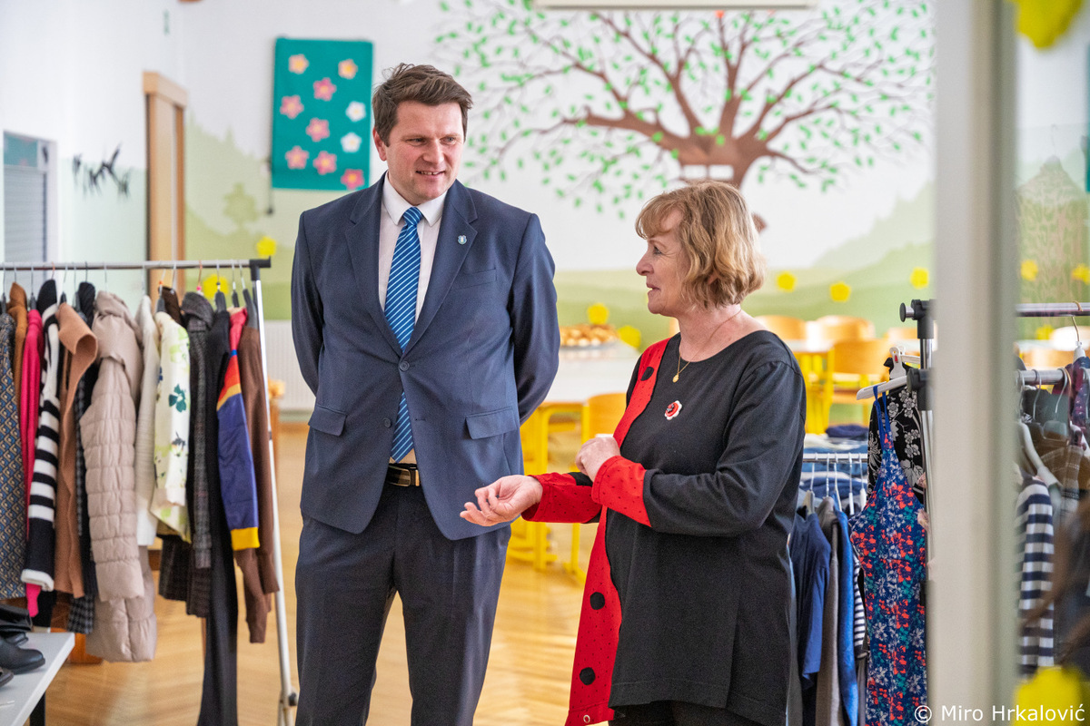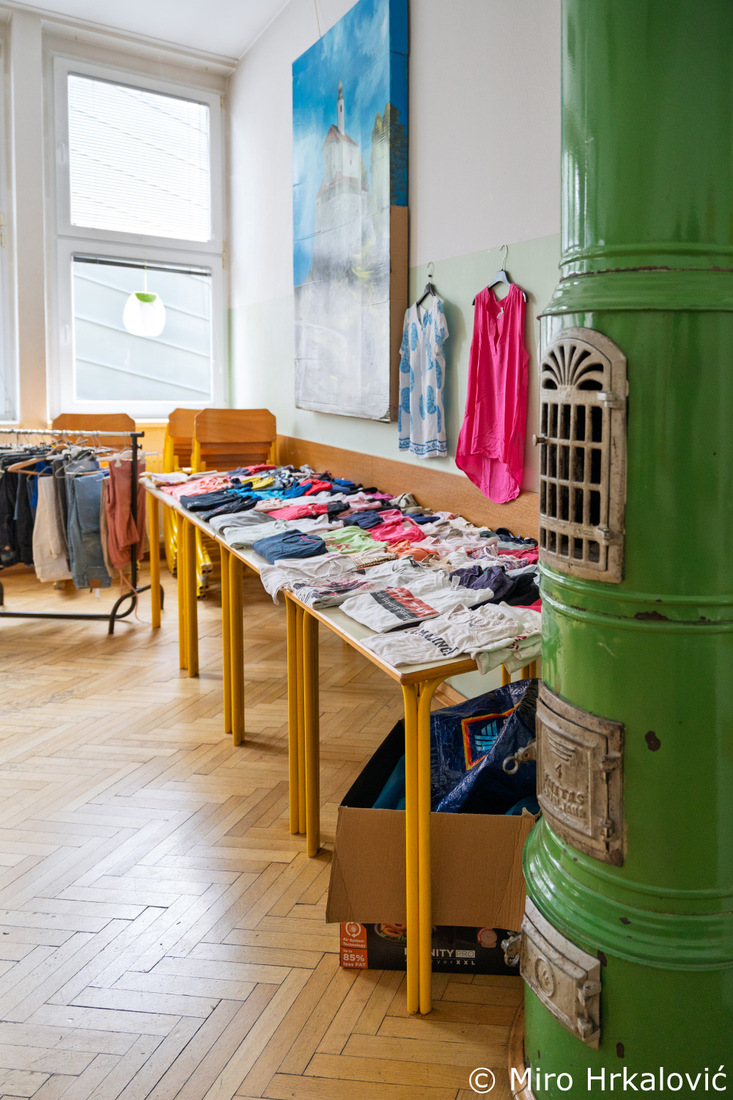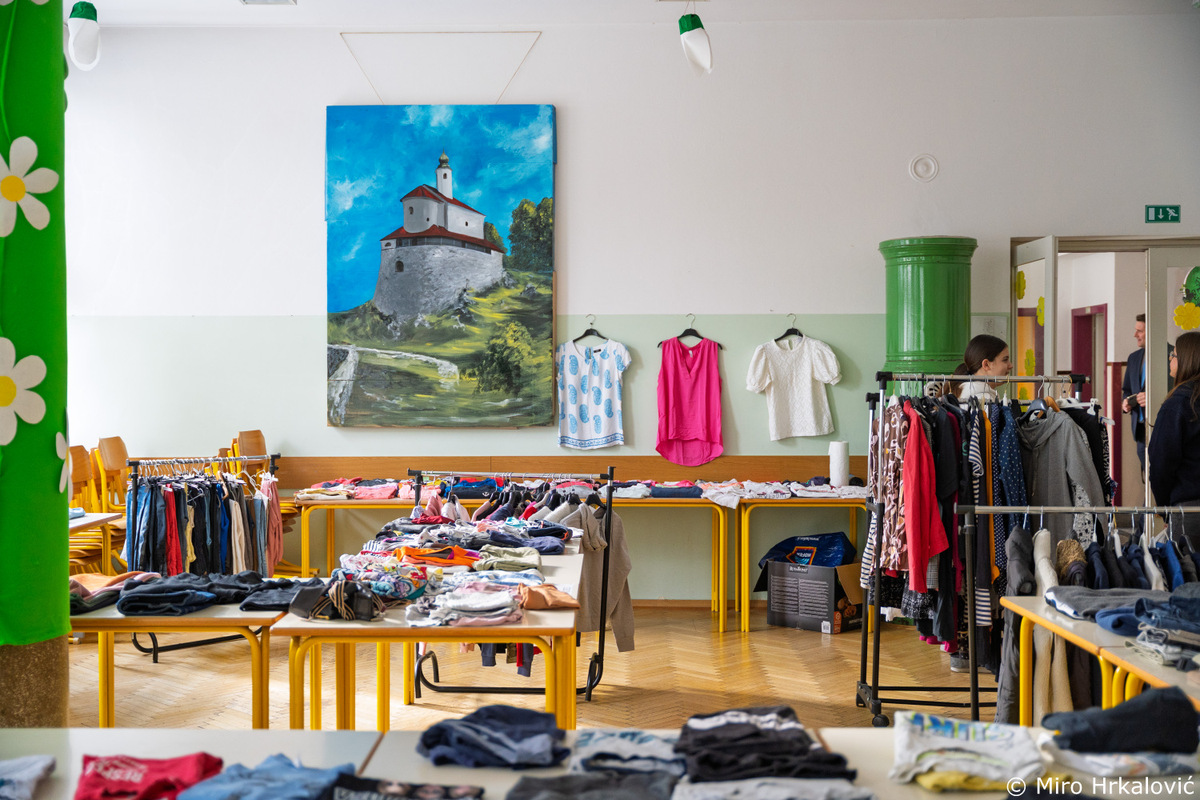 V jedilnici so postavili izmenjevalnico oblačil, v šolski avli pa prodajno razstavo izdelkov.