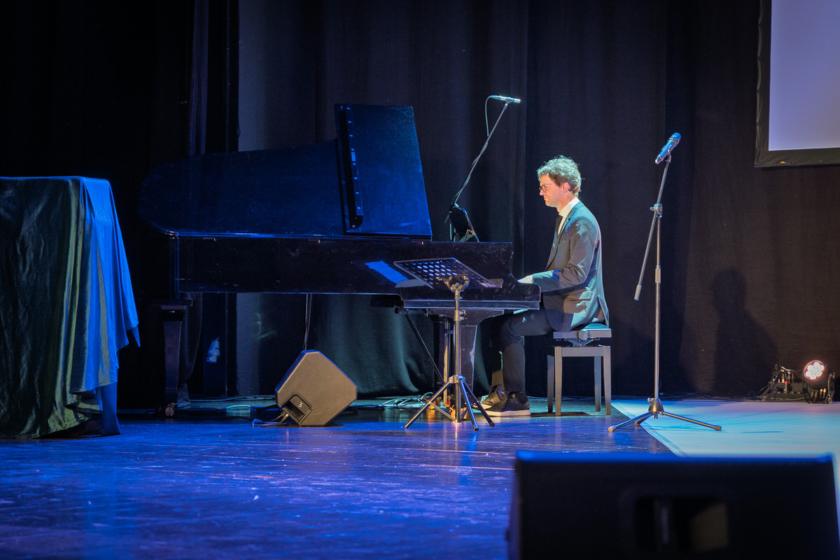 Spremljal ga je sin in pianist Gregor Ftičar, ki je že več kot desetletje dejaven kot koncertant in pedagog v Ženevi (Švica). Izvedel je del svoje avtorske suite Black Smoke, namensko ustvarjene ob lanski obletnici pobratenja občin (in mest s skupno zgodovino proizvodnje smodnika) Kamnik in Trofaiach, s prepletom misli pa se je nastopajočim na odru pridružil tudi povezovalec Matic Maček.