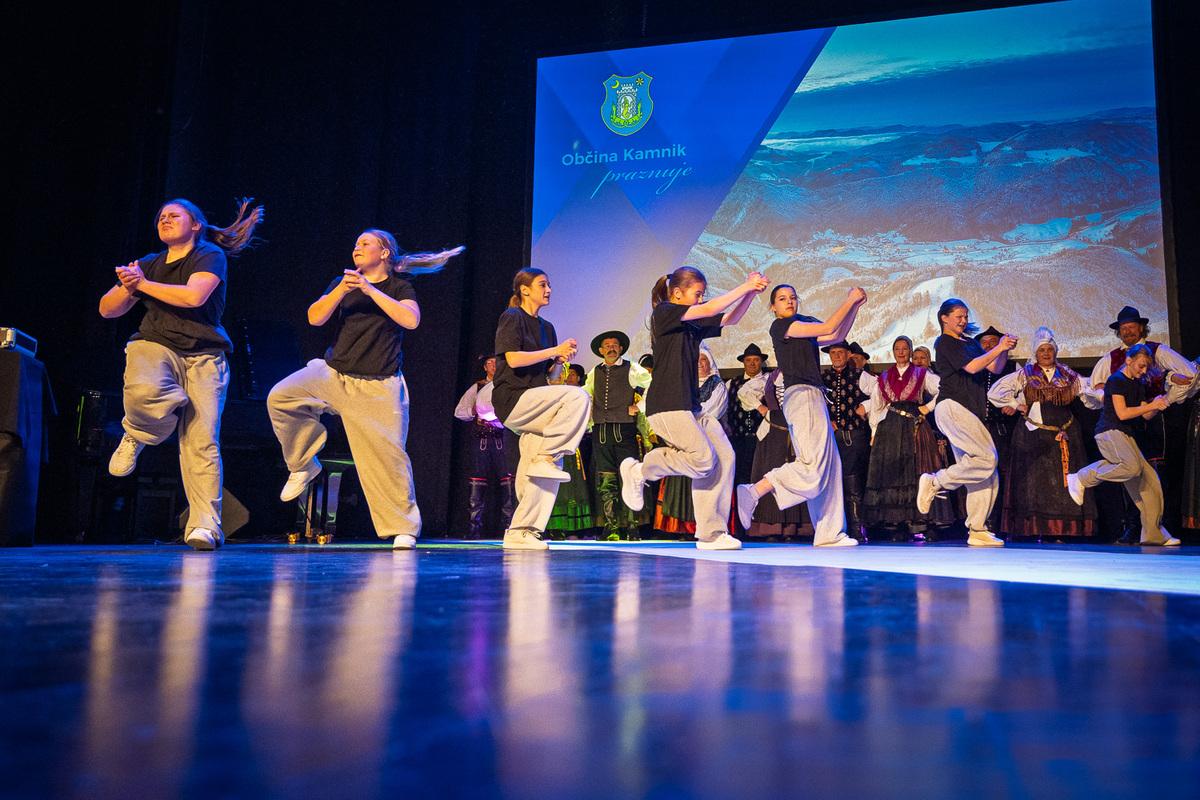 Nocojšnji večer je nadgradila plesna točka, ki je združila na prvi pogled različne svetove – tradicijo in sodobnost, ustaljene navade in svobodo izraza. Folklorna skupina Kamnik in Plesni klub Šinšin sta sprejela izziv, da raziščeta, kako lahko različni pristopi, generacije in izrazi v sodelovanju ustvarijo nekaj novega, bogatega in navdihujočega.