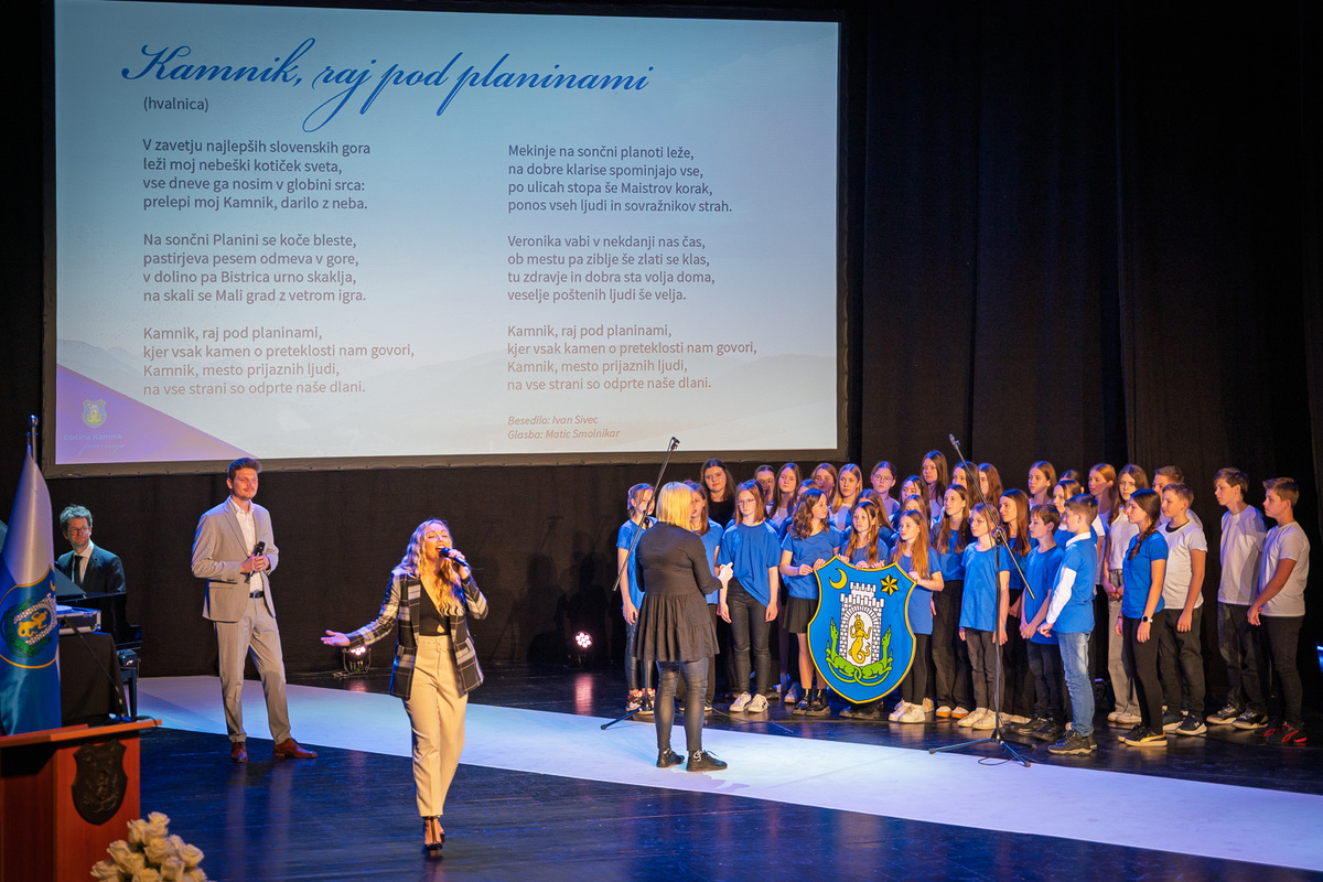 Na koncu slovesnosti so hvalnico Kamniku, besedilo je napisal Ivan Sivec, glasbo pa kamniški glasbenik Matic Smolnikar, ob klavirski spremljavi Gregorja Ftičarja zapeli Tjaša in Uroš Steklasa in Mladinski pevski zbor Osnovne šole Toma Brejca z refrenom: