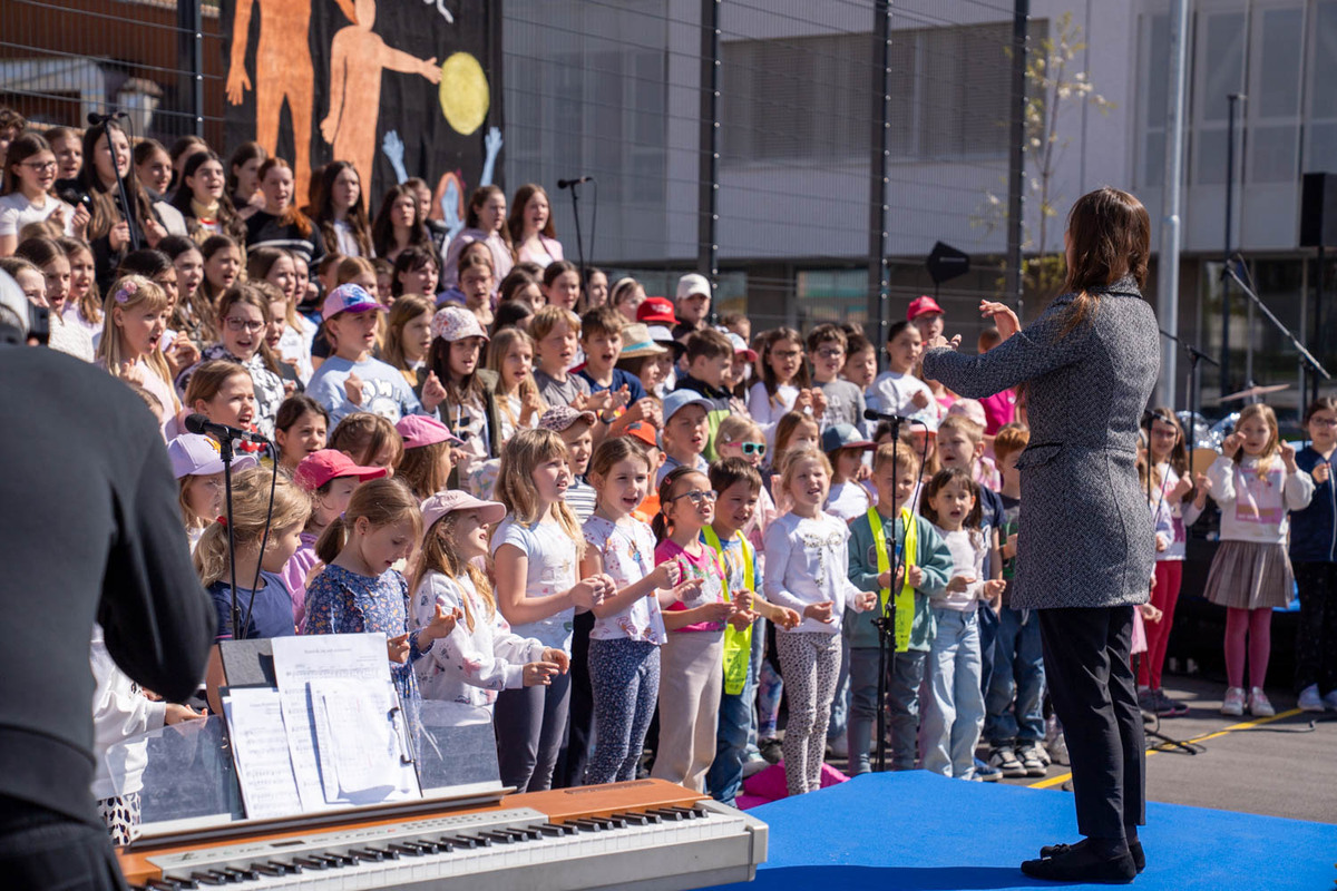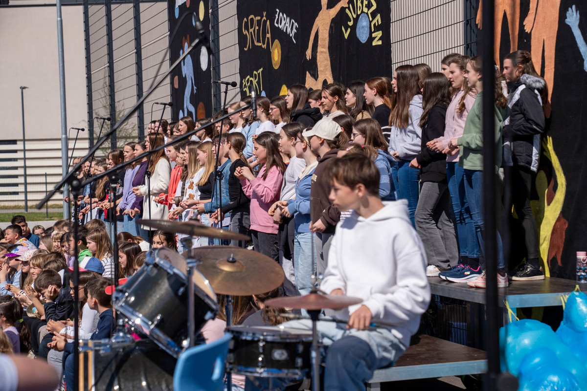 Program so pripravile učenke in učenci Osnovne šole Frana Albrehta Kamnik in Osnovne šole Toma Brejca. Z velikim navdušenjem smo prisluhnili bogatemu glasbenemu programu, v katerem se je pet zborov obeh šol združilo v enoten, mogočen in ubrani glas ob spremljavi skupine, ki je napolnila prostor s posebno energijo. Dogajanje je čudovito dopolnila raznolika plesno-dramska in akrobatska točka, ki nas je iskreno očarala in pokazala izjemne spretnosti naših najmlajših ter hkrati razkrila, kako vsestransko in živahno bo novo igrišče služilo svojemu namenu. S štafeto in prerezom traku pa smo v uporabo predali novo igrišče. Nadobudni otroci so s simbolnimi podajami žog osrednjim gostom pokazali povezanost, sodelovanje in skupno skrb za prostor.