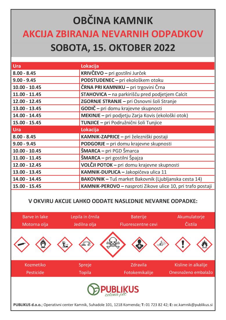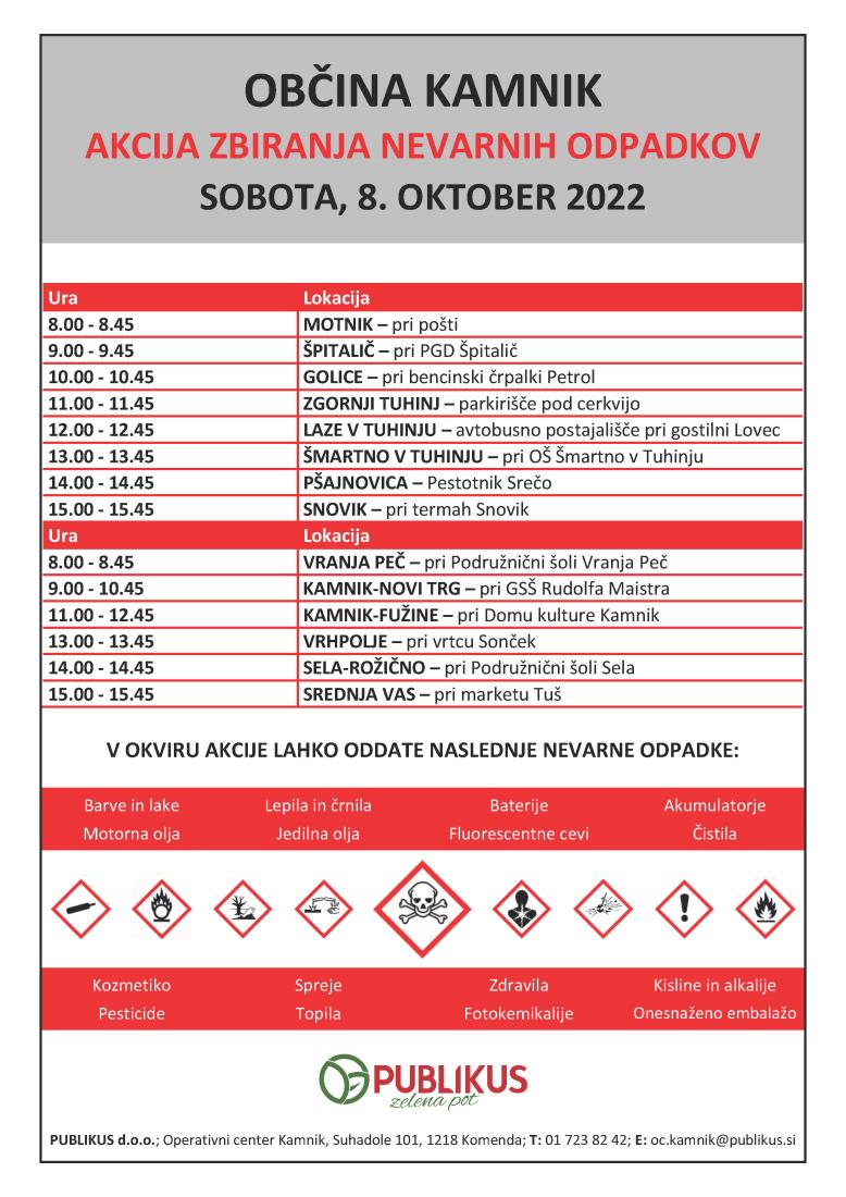 Vse občanke in občane opozarjamo, da je potrebno nevarne odpadke hraniti v originalni embalaži, ki mora biti dobro zaprta, da ne pride do morebitnega razlitja pri prevozu na zbirno mesto oziroma lokacijo oddaje. Potrebno je še paziti, da se odpadki med seboj ne mešajo, saj lahko pride do nepredvidene reakcije med različnimi snovmi. Do oddaje je potrebno nevarne odpadke hraniti na suhem, varnem in otrokom nedostopnem mestu.
