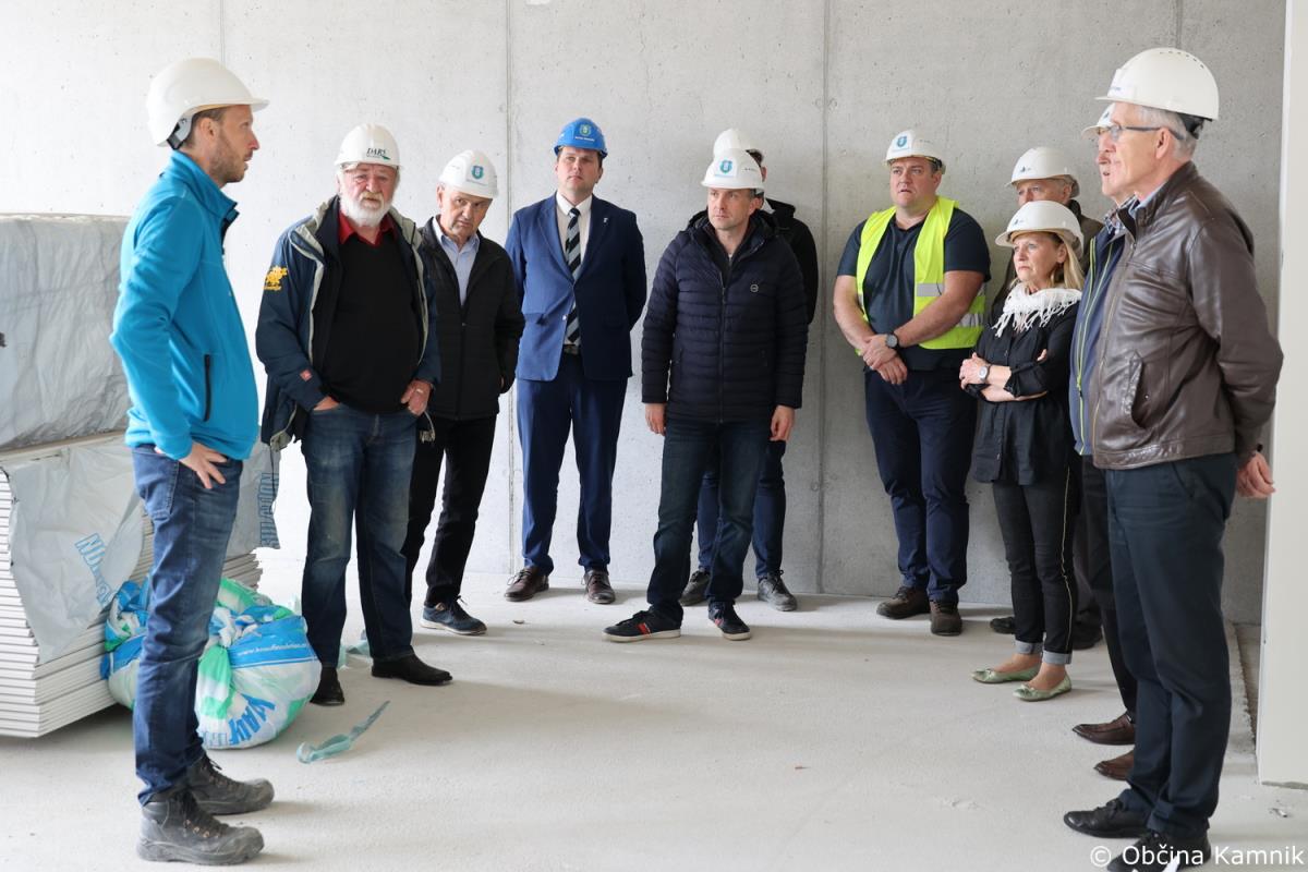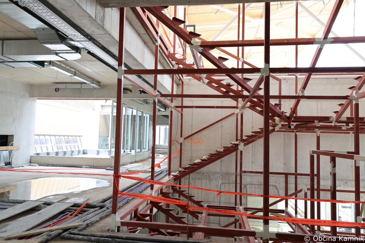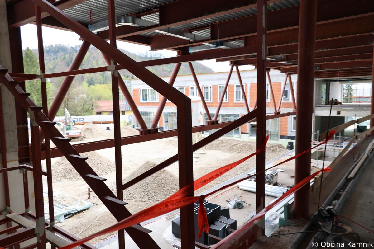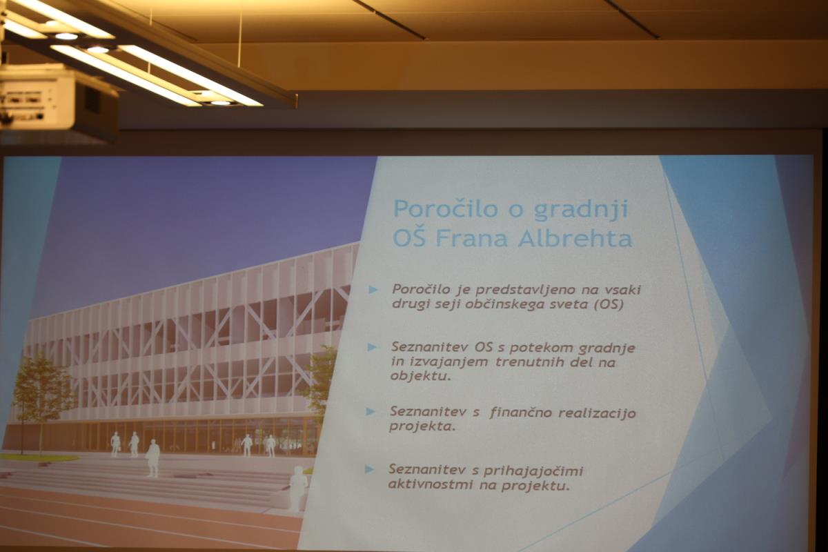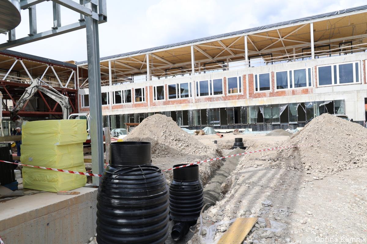 Novi sestav Občinskega sveta Občine Kamnik se je že pred sejo seznanili z gradnjo Osnovne šole Frana Albrehta Kamnik in si ogledal gradbišče, na sami seji pa so se o podrobneje seznanili s samim potekom gradnje, in sicer v točki Seznanitev Občinskega sveta s potekom gradnje nove OŠ Frana Albrehta. »Od zadnjega poročila, pripravljenega za sejo Občinskega sveta v mesecu oktobru 2022, se je na gradbišču izvedlo kar nekaj novih del. V mesecu oktobru smo poročali, da so bili na lameli A izvedeni pasovni temelj športne dvorane, temeljna plošča, vertikalna in horizontalna hidroizolacija, toplotna izolacija vkopanega dela objekta, armiranobetonska konstrukcija kleti, pritličja in deloma tudi 1. nadstropja. Izveden je bil prezračevalni jašek zaklonišča in zasilni izhod, položene kanalizacijske cevi in elektroinštalacijske cevi vgrajene v konstrukcijo in izveden zasip za objektom. Od meseca oktobra dalje je sledilo opaževanje sten in nosilcev prvega nadstropja, polaganje armaturnih mrež ter betoniranje. Izdelana je bila plošča drugega nadstropja ter izvedena zidarska dela. Izvajala so se elektroinštalacijska dela, strojno inštalacijska dela (vodovod, kanalizacija, prezračevanje), slikopleskarska dela, izdelane so bile kinete zračnikov iz zaklonišča. V celoti je izvedena vertikalna hidroizolacija in zasip za objektom. Izvedena je večina montaže zunanjega stavbnega pohištva, izvedena so bila sidrišča za montažo jeklene konstrukcije 2. nadstropja, trenutno se izvajajo obrtniško instalacijska dela ter montaža jeklene konstrukcije 2. nadstropja. Na lameli B so bila do meseca oktobra izvedena zemeljska dela, temeljna plošča in vgrajene kanalizacijske cevi. Na gradbišče je bila dostavljena jeklena mostna konstrukcija, ki je sedaj tudi že montirana. Izdelana je sovprežna plošča prvega in drugega nadstropja. Na jekleni konstrukciji izvajalec izdeluje protipožarno zaščito, izvedena pa je bila tudi montaža lesene strešne konstrukcije nad lamelo B. Na območju lamele C so bila do meseca oktobra v celoti dokončana armiranobetonska in zidarska dela, ter predpriprave in razvodi za inštalacije. Izdelane so bile jeklene požarne in notranje stopnice. Izvedeno je bilo odvodnjavanje iz ravne strehe, ravna (zelena) streha na koti +9,05 (brez proda in ozelenitve) in notranji razvod prezračevanja (delno izvedeno). Izvedene so bile predpriprave za obrtniška dela (meritve odprtin stavbnega pohištva, izbira nekaterih materialov – stropne obloge, parket). V okviru postavitve jeklene mostne konstrukcije je bila v zadnjih mesecih postavljena jeklena konstrukcija 2. nadstropja. Opravljene so bile izmere in skoraj v celoti vgrajeno stavbno pohištvo, izveden je velik del strojnih in elektro instalacij. V celoti je bila izvedena vzorčna učilnica, ki bo po potrditvi služila kot osnova za izvedbo vseh ostalih učilnic. Na lameli C je bila prav tako kot na lameli A izvedena montaža zunanjega stavbnega pohištva. Trenutno se poleg naštetega izvajajo tudi obrtniško instalacijska dela (elektro in strojne instalacije). V mesecu decembru smo s strani Ministrstva za izobraževanje, znanost in šport RS prejeli v podpis aneks, s katerim je bilo dogovorjeno, da nam dodeljena sofinancerska sredstva v celoti nakažejo v letu 2022, kar je bilo konec decembra tudi realizirano,« je povedal predsednik gradbenega odbora Bogdan Pogačar.