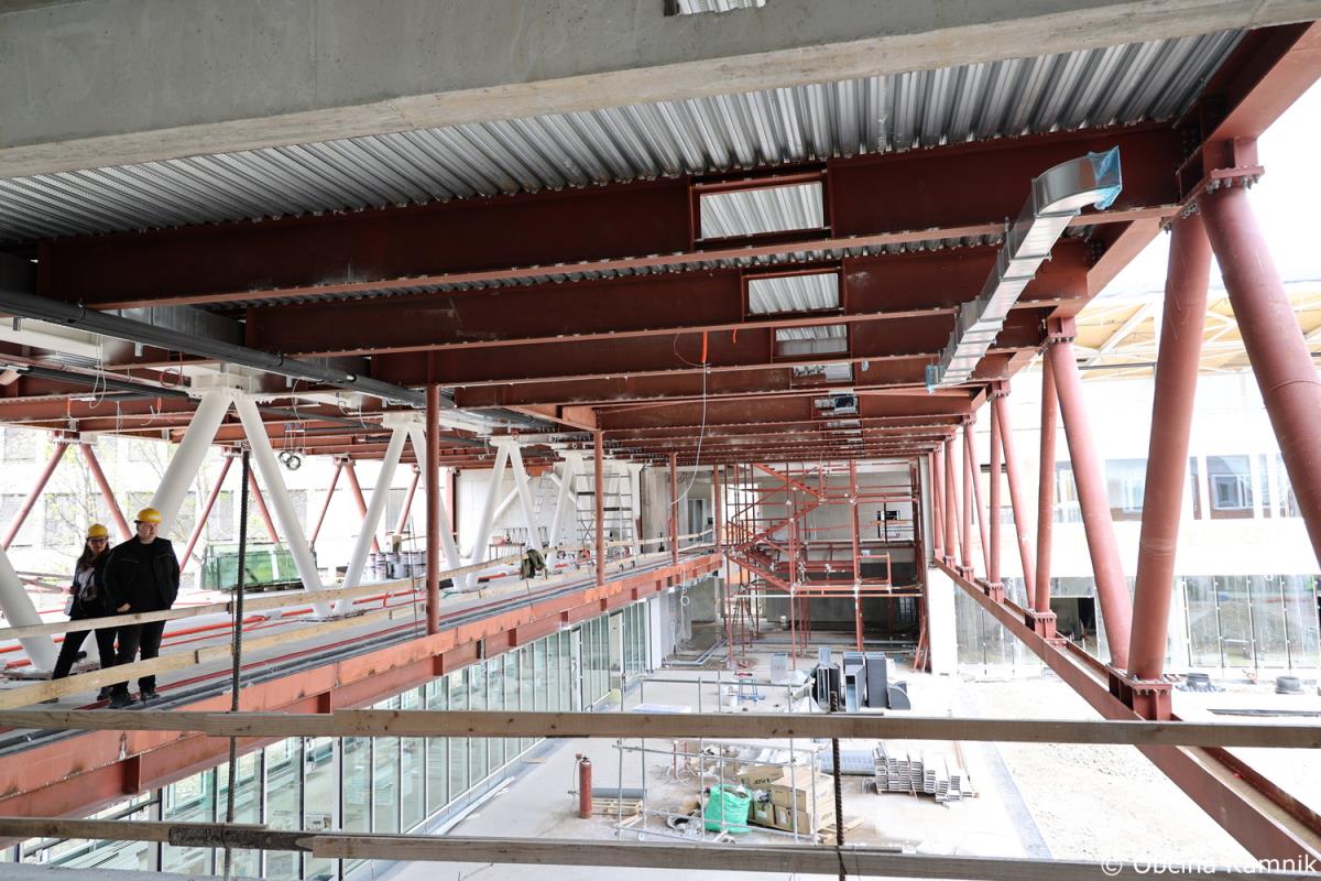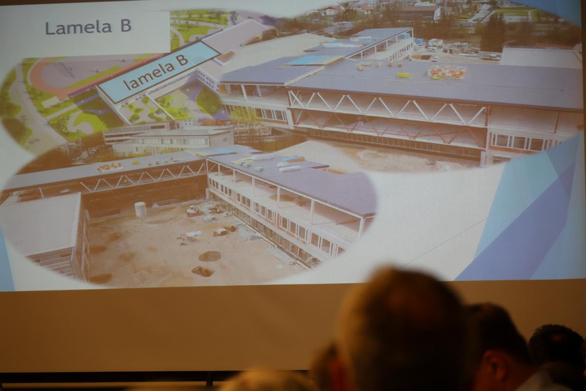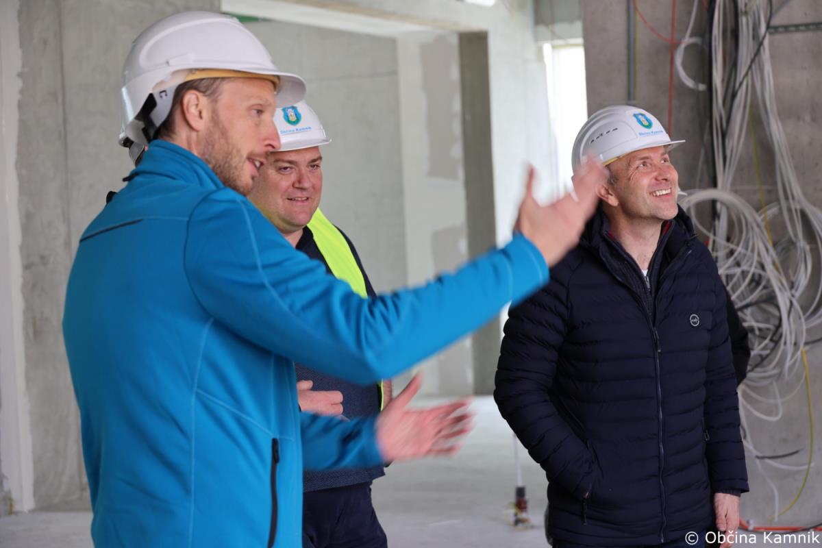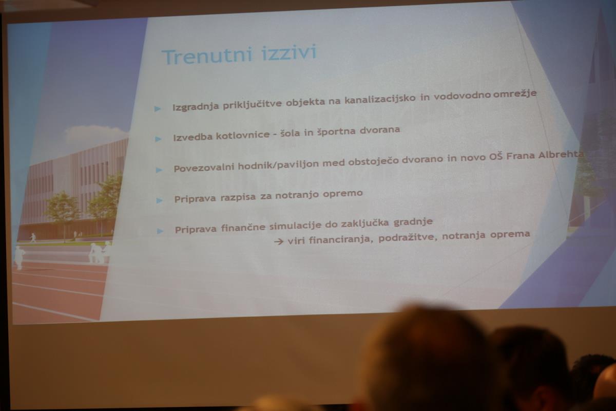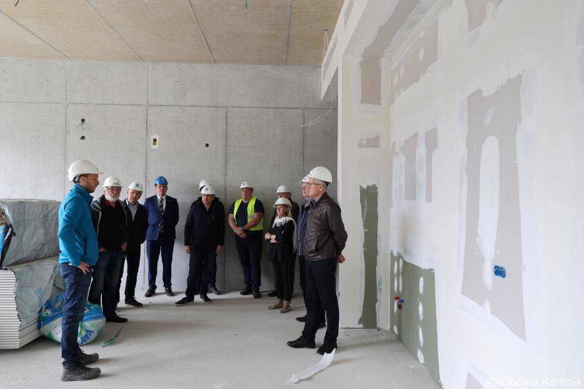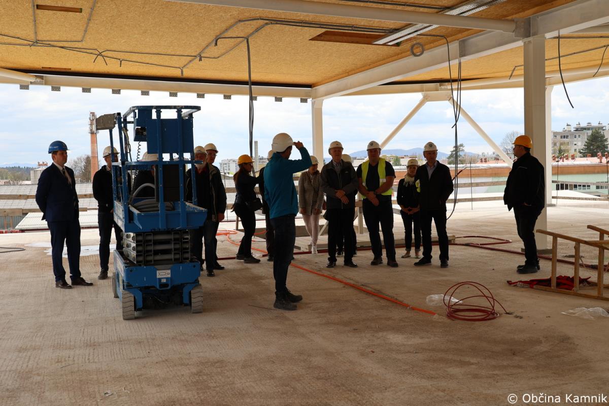 Novi sestav Občinskega sveta Občine Kamnik se je že pred sejo seznanili z gradnjo Osnovne šole Frana Albrehta Kamnik in si ogledal gradbišče, na sami seji pa so se o podrobneje seznanili s samim potekom gradnje, in sicer v točki Seznanitev Občinskega sveta s potekom gradnje nove OŠ Frana Albrehta. »Od zadnjega poročila, pripravljenega za sejo Občinskega sveta v mesecu oktobru 2022, se je na gradbišču izvedlo kar nekaj novih del. V mesecu oktobru smo poročali, da so bili na lameli A izvedeni pasovni temelj športne dvorane, temeljna plošča, vertikalna in horizontalna hidroizolacija, toplotna izolacija vkopanega dela objekta, armiranobetonska konstrukcija kleti, pritličja in deloma tudi 1. nadstropja. Izveden je bil prezračevalni jašek zaklonišča in zasilni izhod, položene kanalizacijske cevi in elektroinštalacijske cevi vgrajene v konstrukcijo in izveden zasip za objektom. Od meseca oktobra dalje je sledilo opaževanje sten in nosilcev prvega nadstropja, polaganje armaturnih mrež ter betoniranje. Izdelana je bila plošča drugega nadstropja ter izvedena zidarska dela. Izvajala so se elektroinštalacijska dela, strojno inštalacijska dela (vodovod, kanalizacija, prezračevanje), slikopleskarska dela, izdelane so bile kinete zračnikov iz zaklonišča. V celoti je izvedena vertikalna hidroizolacija in zasip za objektom. Izvedena je večina montaže zunanjega stavbnega pohištva, izvedena so bila sidrišča za montažo jeklene konstrukcije 2. nadstropja, trenutno se izvajajo obrtniško instalacijska dela ter montaža jeklene konstrukcije 2. nadstropja. Na lameli B so bila do meseca oktobra izvedena zemeljska dela, temeljna plošča in vgrajene kanalizacijske cevi. Na gradbišče je bila dostavljena jeklena mostna konstrukcija, ki je sedaj tudi že montirana. Izdelana je sovprežna plošča prvega in drugega nadstropja. Na jekleni konstrukciji izvajalec izdeluje protipožarno zaščito, izvedena pa je bila tudi montaža lesene strešne konstrukcije nad lamelo B. Na območju lamele C so bila do meseca oktobra v celoti dokončana armiranobetonska in zidarska dela, ter predpriprave in razvodi za inštalacije. Izdelane so bile jeklene požarne in notranje stopnice. Izvedeno je bilo odvodnjavanje iz ravne strehe, ravna (zelena) streha na koti +9,05 (brez proda in ozelenitve) in notranji razvod prezračevanja (delno izvedeno). Izvedene so bile predpriprave za obrtniška dela (meritve odprtin stavbnega pohištva, izbira nekaterih materialov – stropne obloge, parket). V okviru postavitve jeklene mostne konstrukcije je bila v zadnjih mesecih postavljena jeklena konstrukcija 2. nadstropja. Opravljene so bile izmere in skoraj v celoti vgrajeno stavbno pohištvo, izveden je velik del strojnih in elektro instalacij. V celoti je bila izvedena vzorčna učilnica, ki bo po potrditvi služila kot osnova za izvedbo vseh ostalih učilnic. Na lameli C je bila prav tako kot na lameli A izvedena montaža zunanjega stavbnega pohištva. Trenutno se poleg naštetega izvajajo tudi obrtniško instalacijska dela (elektro in strojne instalacije). V mesecu decembru smo s strani Ministrstva za izobraževanje, znanost in šport RS prejeli v podpis aneks, s katerim je bilo dogovorjeno, da nam dodeljena sofinancerska sredstva v celoti nakažejo v letu 2022, kar je bilo konec decembra tudi realizirano,« je povedal predsednik gradbenega odbora Bogdan Pogačar.