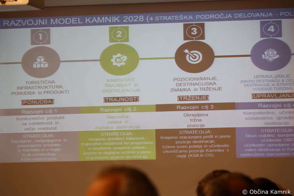 Podrobneje je bila predstavljena Strategija trajnostnega razvoja in trženja turizma v občini Kamnik za obdobje 2023–2030. »Za uresničevanje vizije Kamnika se razvojni model osredotoča na naslednje strateške cilje: povečati stacionarni profil, prodornost, celoletnost, kakovost in dodano vrednost turizma, bolje valorizirati izjemne konkurenčne prednosti Kamnika kot turistične destinacije in vzpostaviti turizem kot gospodarsko panogo in turizem razvijati na odgovoren, uravnotežen in trajnosten način – na način, da prinaša vrednost za vse. Predstavljenih je bilo 5 ključnih razvojno-trženjskih principov, s katerimi so nakazani fokusi delovanja (ključni principi) v prihodnjem strateškem obdobju. Strategija v okviru 4 politik opredeli 24 ukrepov (znotraj njih pa večje število indikativnih projektov oziroma aktivnosti),« je med drugim v tej točki dejala strokovna sodelavka pri pripravi strategije Miša Novak iz podjetja Alohas, trajnostne rešitve v turizmu. Strategija je bila sprejeta s 26 glasovi za.
