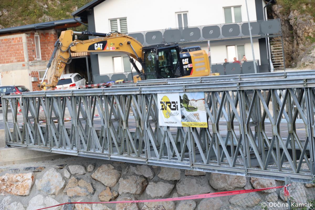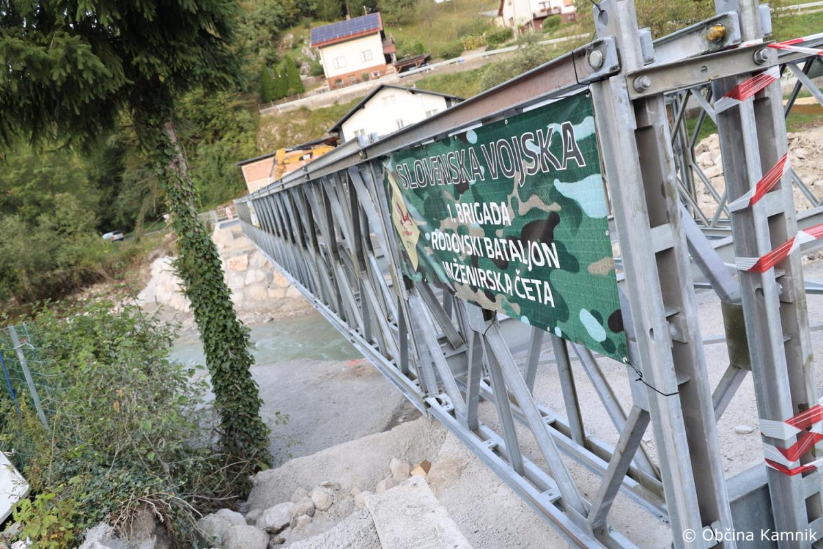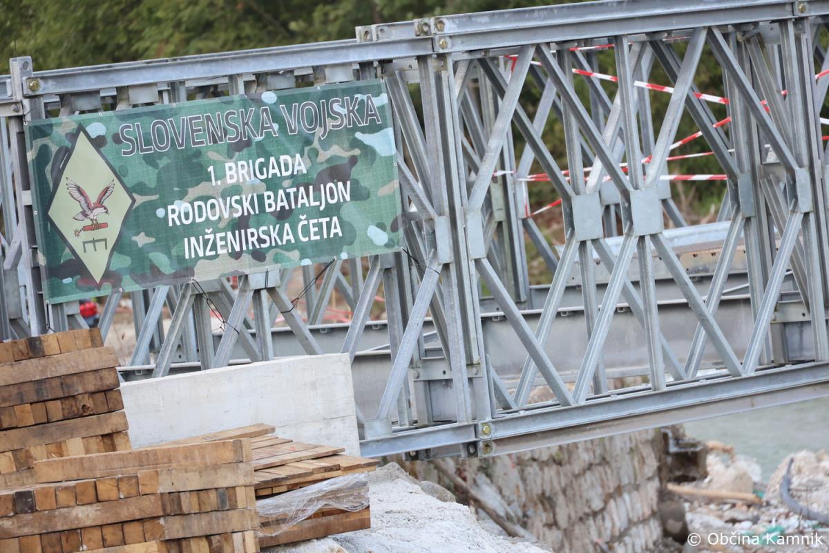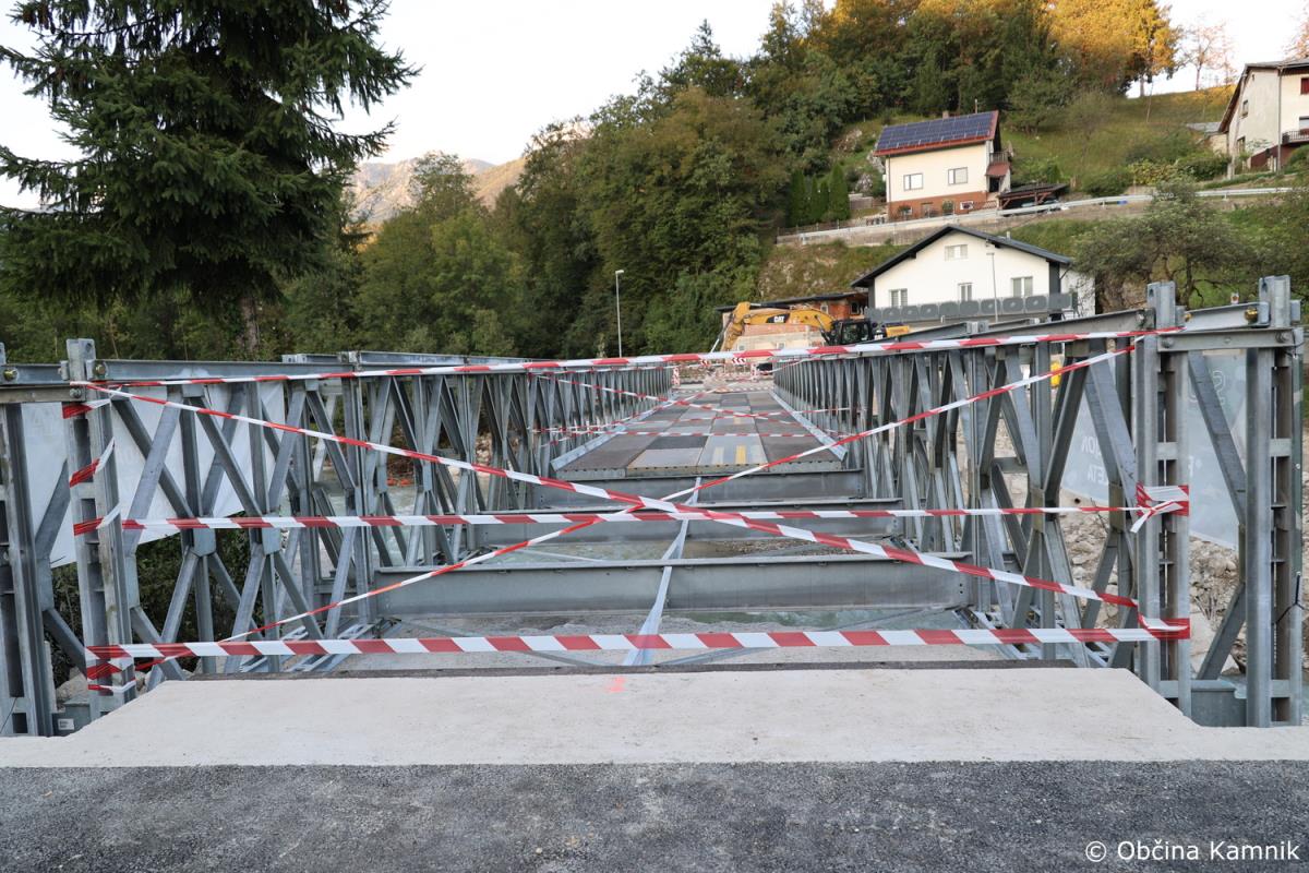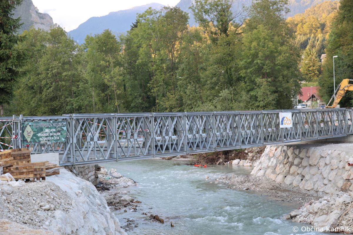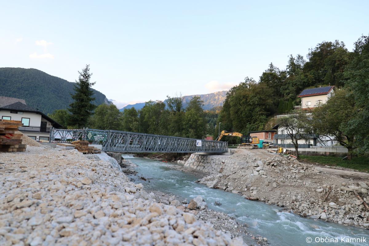 Občinski štab civilne zaščite Kamnik obvešča, da je Direkcija za infrastrukturo pričela z izgradnjo začasnega mostu. Vozišče bo širine 4 metre, celotna širina mostu bo 6 metrov, dolžina pa 40 metrov, tako kot nekdanji most bo omogočal enosmerni promet z odstopom prednosti. Na mestu porušenega objekta se bodo intenzivno izvajala dela za postavitev začasnega montažnega premostitvenega objekta, predvidoma v prvi polovici septembra bo vzpostavljen izmenično enosmerni promet. Glede možnosti prehoda pešcev čez most pa vas bomo še obveščali, saj trenutno še nismo prejeli informacij.