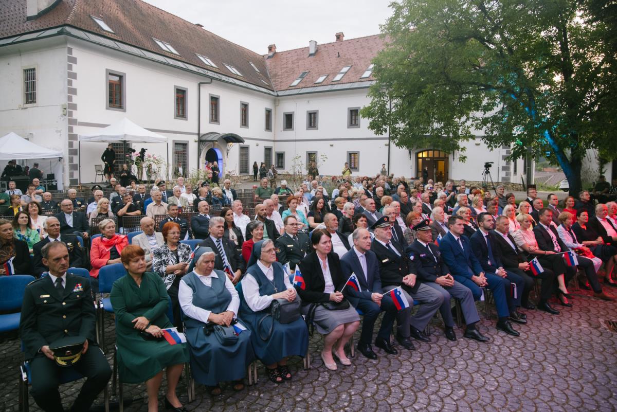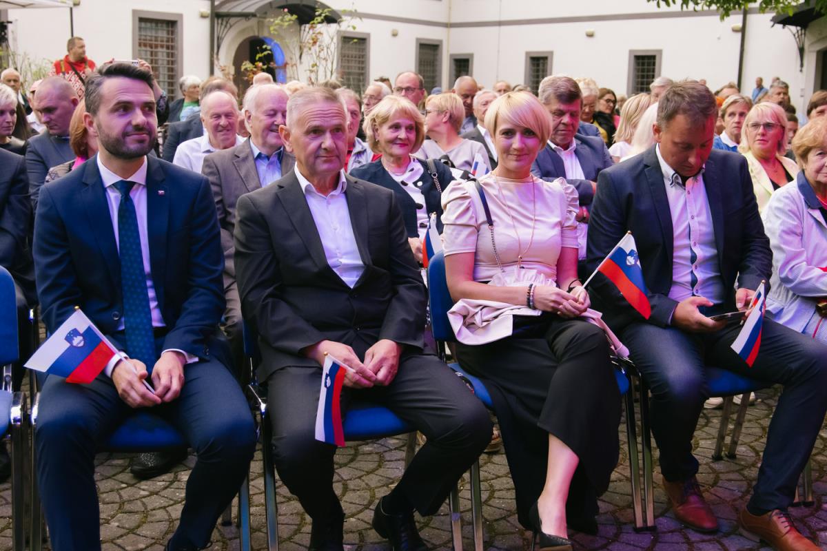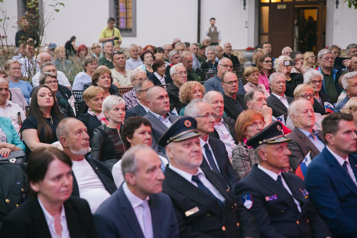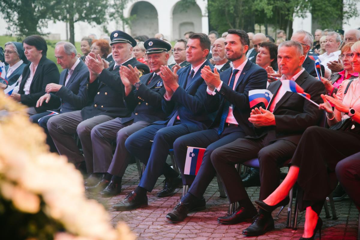 Občina Kamnik se je zvečer pridružila številnim praznovanjem ob dnevu državnosti. Dnevu, ko smo se pred 33. leti borili in se povezali kot enotni, hrepeneči po lastni državi in uresničili dolgoletno željo samostojni državi. Z današnjo slovesnostjo smo povezali nekatere slovenske pokrajine, narečja in glasbene ustvarjalce. Gostitelju včerajšnjega večera in slavnostnemu govorniku, županu Mateju Slaparju, pa so se v samostanu Mekinje med drugimi pridružili tudi poslanec Državnega zbora Republike Slovenije in novo izvoljeni poslanec Evropskega parlamenta mag. Matej Tonin, podžupanja Romana Učakar, občinske svetnice in svetniki, častna občana dr. Marjeta Humar in Anton Tone Smolnikar, predstavniki Slovenske vojske ter predsedniki, zastavonoše, predstavniki ter člani veteranskih in domoljubnih organizacij Občine Kamnik ter drugih društev in zvez.