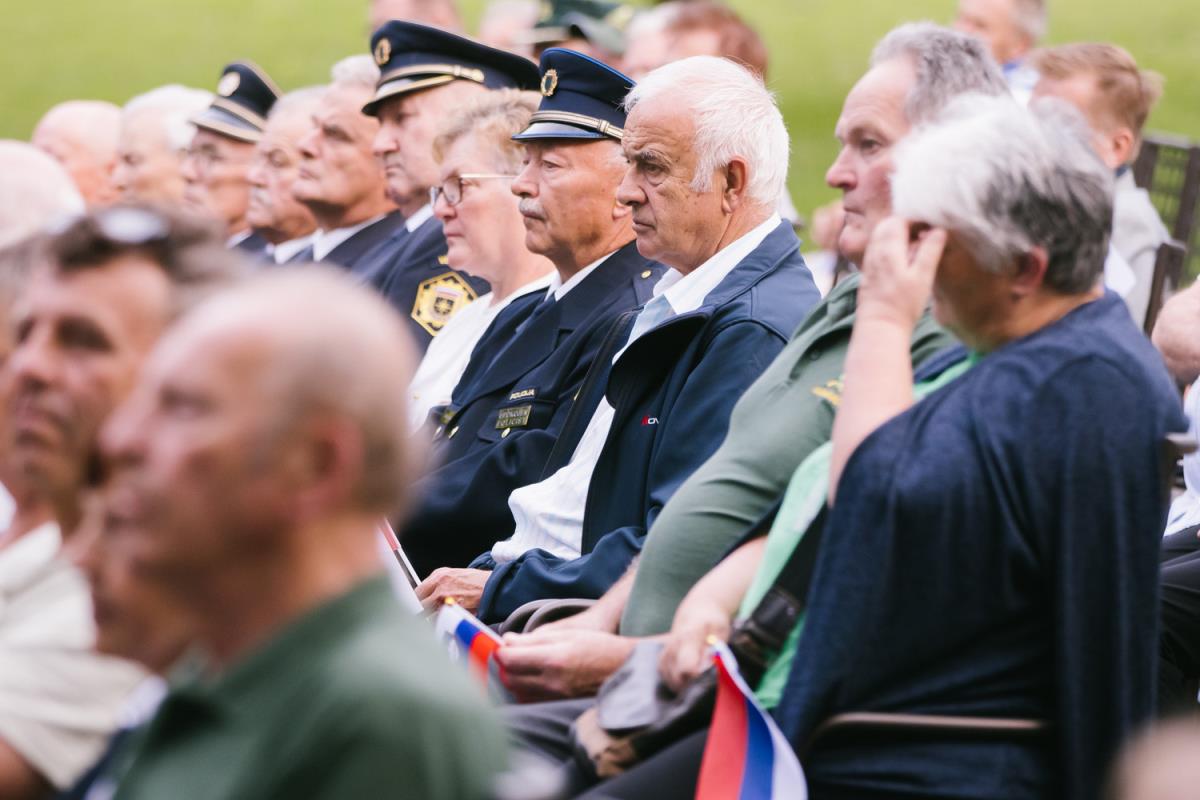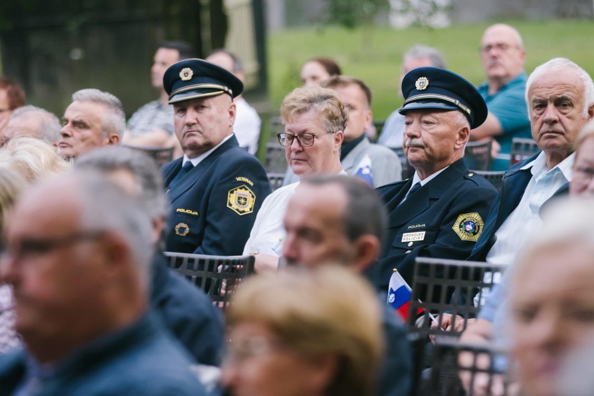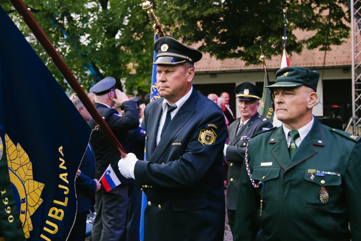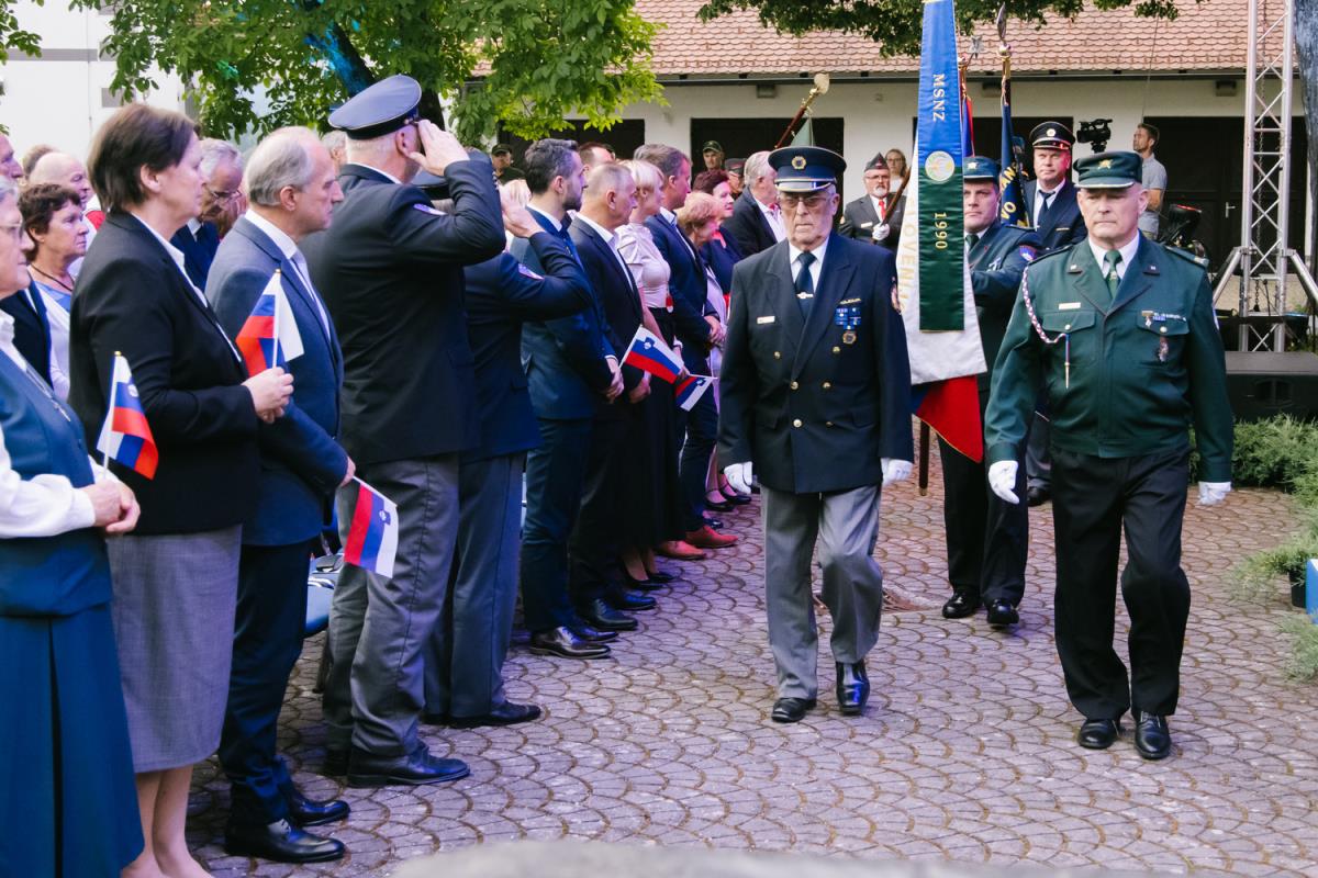 Po prihodu zastavonoš Območnega združenja veteranov vojne za Slovenijo Kamnik – Komenda, Društva general Maister Kamnik, Združenja borcev za vrednote NOB Kamnik, Policijskega veteranskega društva Sever Kamnik in Zveze slovenskih častnikov območnega združenja Kamnik – Komenda ter uvodnih zvokih Zdravljice, v izvedbi Mestne godbe Kamnik, je zbrane goste sprva na nekaj zgodovinskih dejstev nastanka naše države spomnil predsednik Policijskega veteranskega društva Sever – Ljubljana mag. Darko Repenšek, nato pa opisal pogled veteranov nanj in na sedanje razmere: »Spoštovane, spoštovani. Počaščen sem, da vas kot predsednik Policijskega veteranskega društva Sever – Ljubljana, katerega pomemben in sestavi del je tudi odbor Kamnik Komenda, pozdravim na današnjem pomembnem državnem dogodku, in to v imenu Policijskega veteranskega društva Sever kot tudi Zveze veteranov vojne za Slovenijo, v prečudovitem ambientu Mekinjskega samostana. Vsi, ki ste danes tukaj, da skupaj počastimo največji praznik naše države, samostojne, demokratične Republike Slovenije, ste tukaj zato, ker ste veliki domoljubi, to čutite v svojih srcih, in se zavedate, da je domovina ena in edina. Dan državnosti je praznik vseh Slovenk in Slovencev, ne samo nas pripadnikov policije in teritorialne obrambe iz leta 1991, temveč vseh, ki tvorimo t.i. zgodovinski lok uresničevanja zgodovinskih sanj in teženj ljudi na tem prostoru o samostojni državni tvorbi. Od Maistrovih borcev, Tigrovcev, do partizank in partizanov, ki so bili v drugi svetovni vojni dokazano in mednarodno priznano na pravi poti, to je proti fašistični strani zgodovine. In ne pozabimo, da je praznik naše državnosti, praznik naše kulture, je praznik zavesti, da je Slovenija dežela vseh državljanov Slovenije. Uporabil sem besedno zvezo uresničevanje zgodovinskih sanj, mogoče je bolje to obdobje poimenovati kot hrepenenje naroda po samostojnosti in neodvisnosti, saj smo dolga obdobja, vse tja do 1918 živeli v nadvladi tujcev, ki so bili naši gospodarji, čeprav na naši zemlji. Slovite so besede dr. Antona Korošca, slovenskega državnozborskega poslanca na Dunaju, izrečene zadnjemu slovenskemu cesarju Karlu prvemu, ki je še zadnji in zadnjič poskušal restavrirati Habsburško monarhijo in Korošca na zadnji avdienci rotil, naj Slovenci ostanemo zvesti Avstriji. Korošec je tedaj cesarju dejal: »Veličanstvo, prekasno.« Takrat so bili Slovenci že odločeni, da se povežejo v zvezo slovanskih narodov, takrat v Kraljevino Jugoslavijo. Pred 33 leti, 25. junija 1991, pa je Slovenija končno postala samostojna, neodvisna država in Slovenci na svojem. In danes slovenske zastave ponosno plapolajo, kot smo navedli v vabilu, plapolajo pred palačo Združenih narodov v New Yorku, pred sedežem Sveta Evrope in NATA v Bruslju, na številnih veleposlaništvih po svetu, na olimpijskih igrah ter svetovnih in evropskih prvenstvih v čast nas in naših športnikov, ki zastopajo nas in državo Slovenijo. Danes še posebej ponosno plapolajo številne zastave na pročeljih zgradb, na stebrih in vrtovih širom po domovini. Slovenija danes praznuje in z njo upravičeno vsi mi, državljanke in državljani nam tako drage domovine Slovenije. Zato mi spoštovane in spoštovani dovolite poklon naši domovini ob njenem prazniku in čestitke vsem vam, kot tudi vsem občankam in občankam Občine Kamnik ob dnevu državnosti. Uživajte na današnji slovesnosti in na današnjem skupnem druženju. Naj mi bo dovoljeno, da se iskreno zahvalim snovalcem in izvajalcem kulturnega programa, ki sledi v nadaljevanju. Naj pa zaključim s pomenljivim verzom slovenske osnovnošolke in vas povabim k razmišljanju. »Slovenec biti ni drugega kakor slovensko misliti, slovensko peti in govoriti. Slovensko ljubiti. Slovenec biti, slovensko ljubiti pa je pravzaprav nerazložljiva stvar, ker je to stvar srca in biti.«