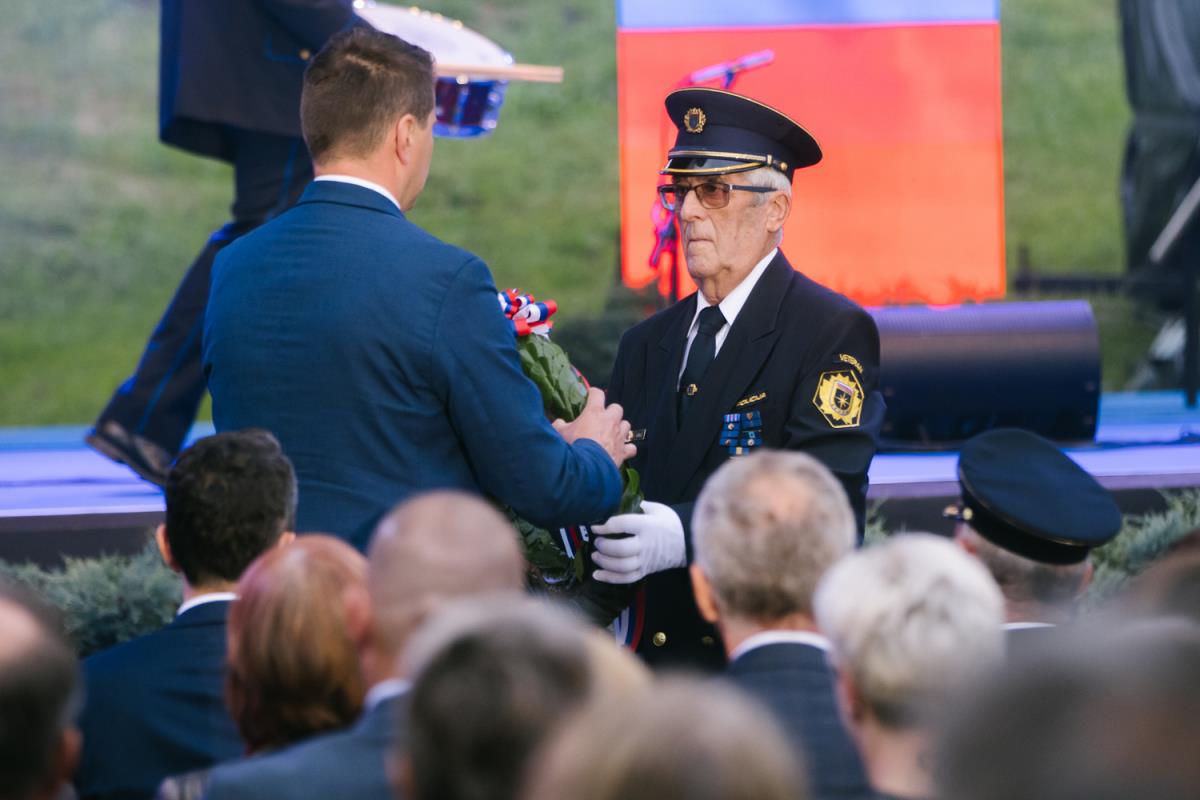 Slavnostni govornik, župan Matej Slapar pa je spregovoril o pomembnih in prelomnih odločitvah ter o Kamniku danes: »Spoštovane Kamničanke, spoštovani Kamničani, drage gostje in gosti, lepo pozdravljeni na nocojšnji prireditvi ob 33. obletnici samostojne države Republike Slovenije. Nocoj praznujemo rojstni dan suverene, neodvisne, demokratične države Slovenije. Spominjamo se dneva, ko je naš narod uresničil več stoletni sen in si priboril svojo demokratično državo. Danes praznujemo v spomin na dan, ko smo začeli novo poglavje. Dan, ko smo pred 33 leti ponosno uresničili vizijo in sanje preteklih generacij, naših dedov, pradedov in njihovih prednikov. V tistem usodnem trenutku sta bila pomembna pogum posameznikov na eni strani ter odločnost in enotnosti celotnega naroda, ki je imel neomajno voljo in vero po neodvisni, samostojni in demokratični državi na drugi strani. 25. junija 1991 sta bili na temelju skoraj soglasne plebiscitarne odločitve sprejeti Deklaracija o neodvisnosti Slovenije in Temeljna ustavna listina o samostojnosti in neodvisnosti Slovenije. Osamosvojitvena vojna in pred njo še ključne odločitve, ki so jih odločevalci z mandatom izjemne večine sprejeli v hramu demokracije, so nas kot narod poenotile. Iskrena hvala vsem, ki ste prispevali svoj kamenček v mozaiku osamosvajanja, pa naj je bilo to z odločitvijo na plebiscitu, podporo svojcem v katerikoli funkciji osamosvajanja, ali aktivnim udejstvovanjem v vojni in branjenju naše domovine pred agresorjem, ki je bil do tedaj »naša« Jugoslovanska ljudska armada. Z globokim spoštovanjem izražamo hvaležnost tistim, ki so v vojni za Slovenijo darovali največ. Darovali svoje življenje. Tudi naš občan Edvard Peperko, po katerem smo poimenovali v Kamniku ulico, je bil med njimi, in bo za vse večne čase z velikimi črkami ostal zapisan v našem spominu. Spoštujemo to, da živimo v miru in imamo možnost ustvarjati ter razvijati državo in ne nazadnje našo lokalno skupnost. Našo občino Kamnik.«